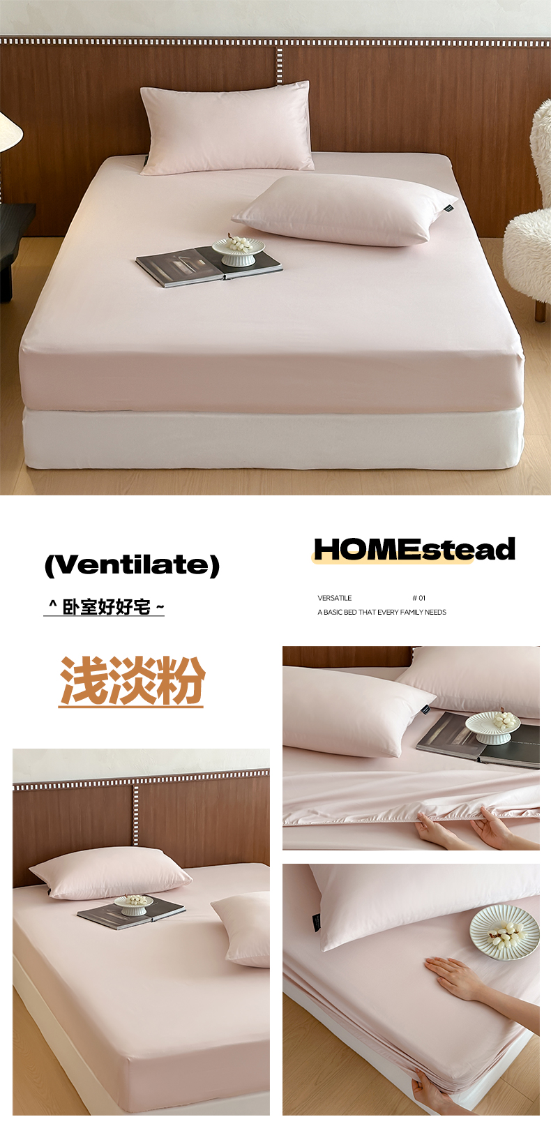 (总)三味舒屋 2025新款简约全棉纯棉夹棉床笠单床笠床笠单件-珍妮系列(严控券后控价:券后128/148/158元),珍妮白,珍妮粉,珍妮咖