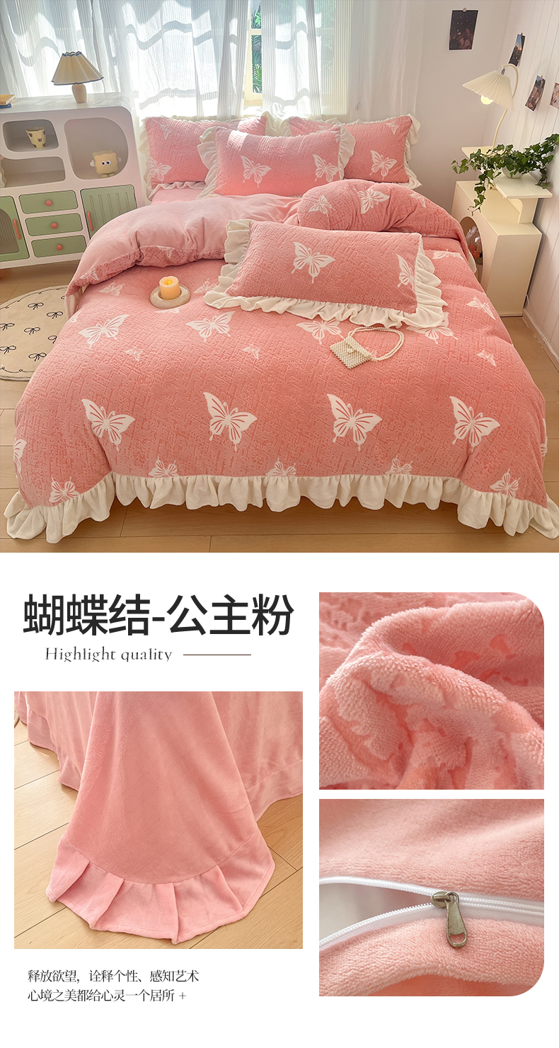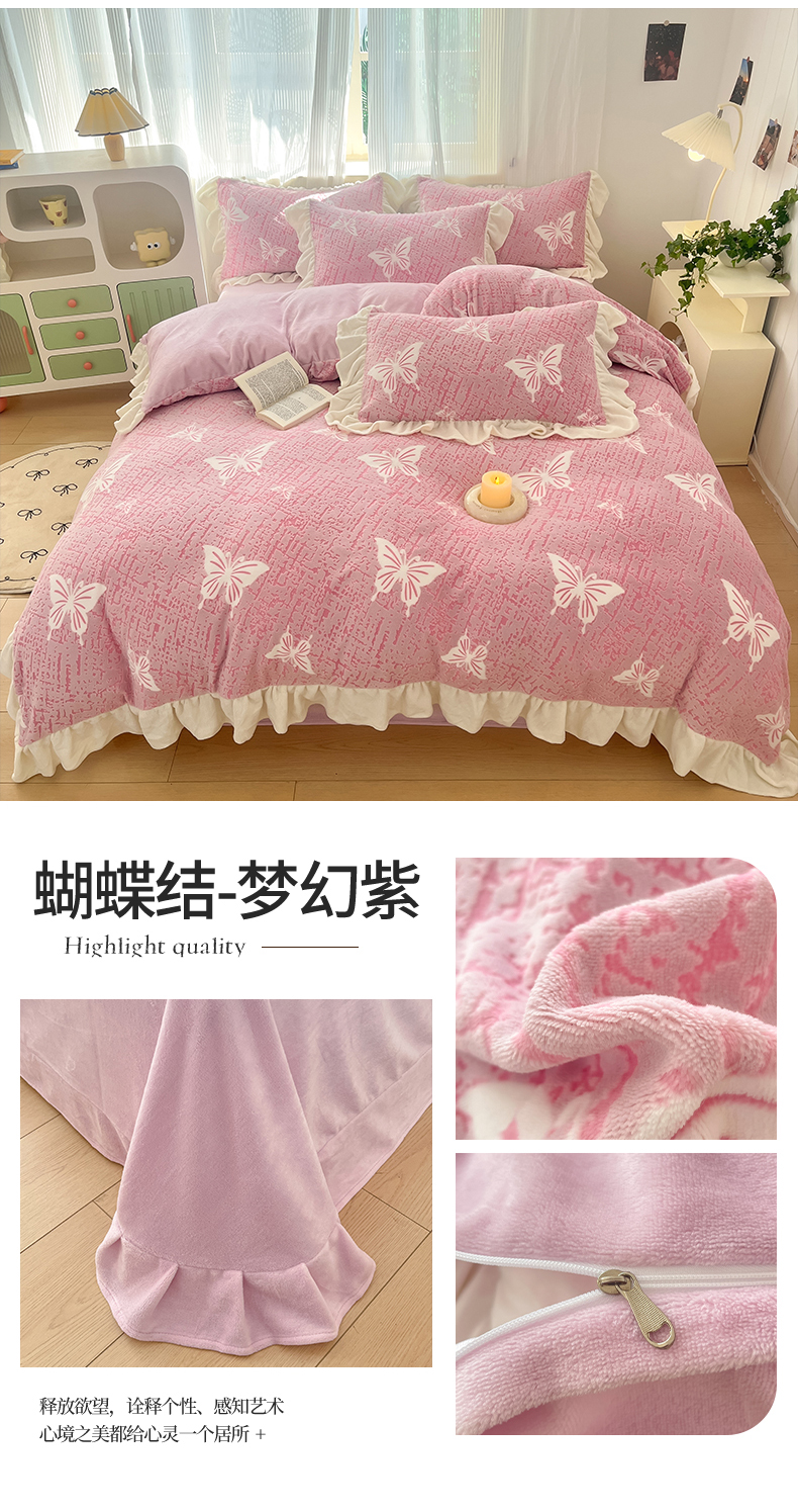 (总)爱家(原缔乐家纺) 2025新款牛奶雕花绒四件套-如梦,蝴蝶结-公主粉,蝴蝶结-梦幻紫,如梦-公主粉,如梦-奶昔白