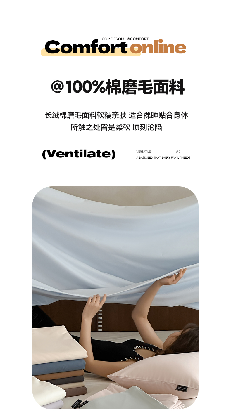 商品名称:三味舒屋 2025新款50支磨毛长绒棉纯棉纯色单被套被套单件-长期主义 晴天蓝