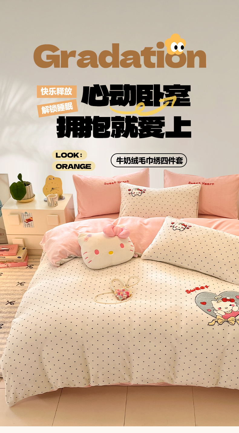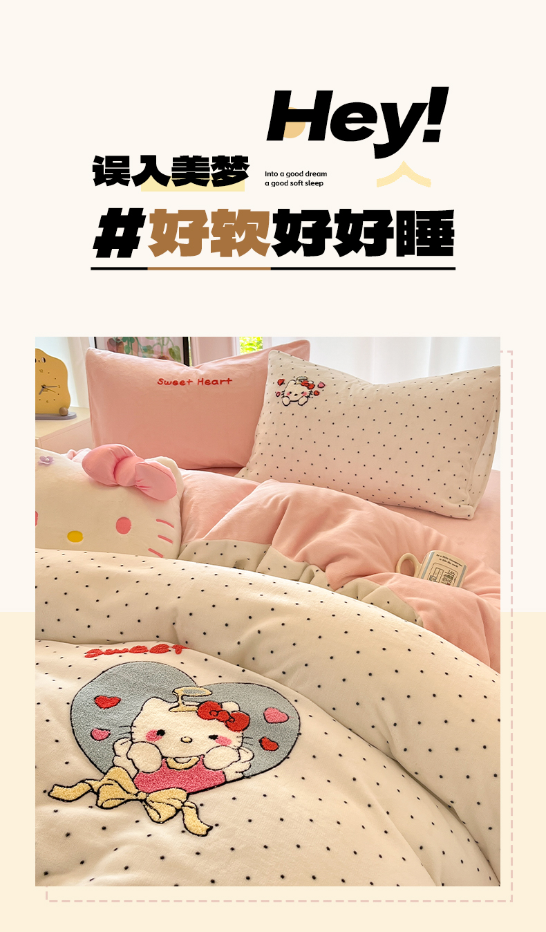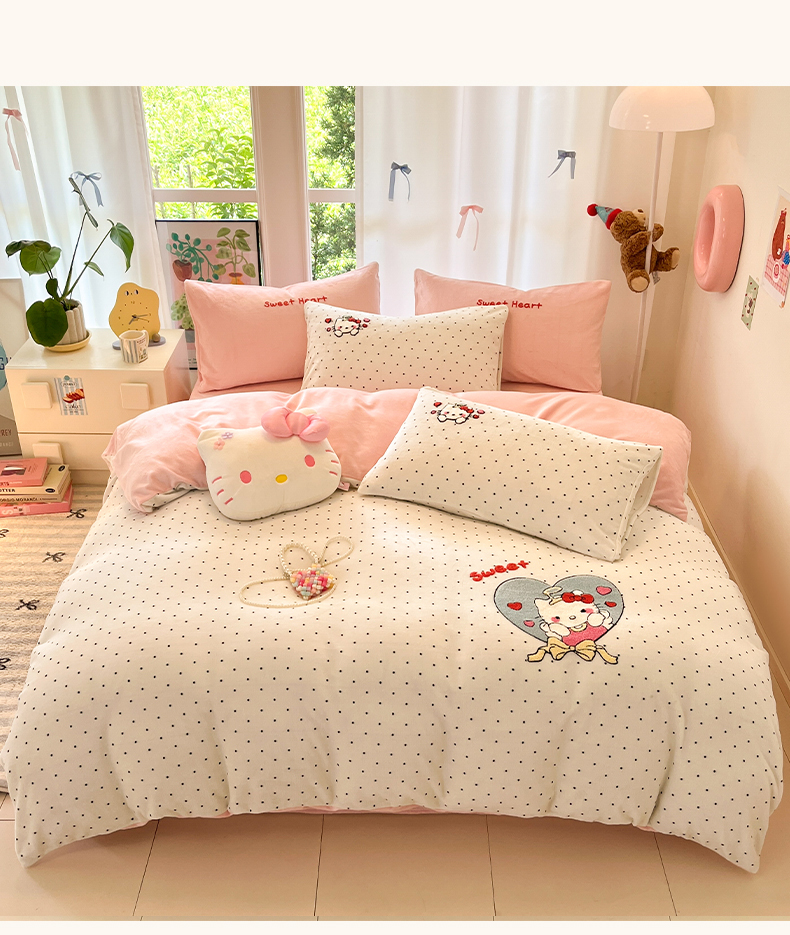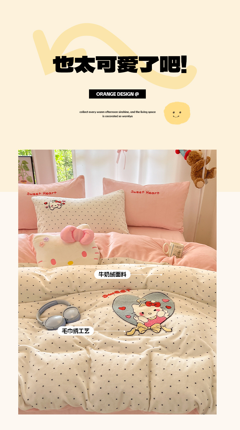 如一 2025新款卡通毛巾绣系列牛奶绒四件套第一批 爱心天使