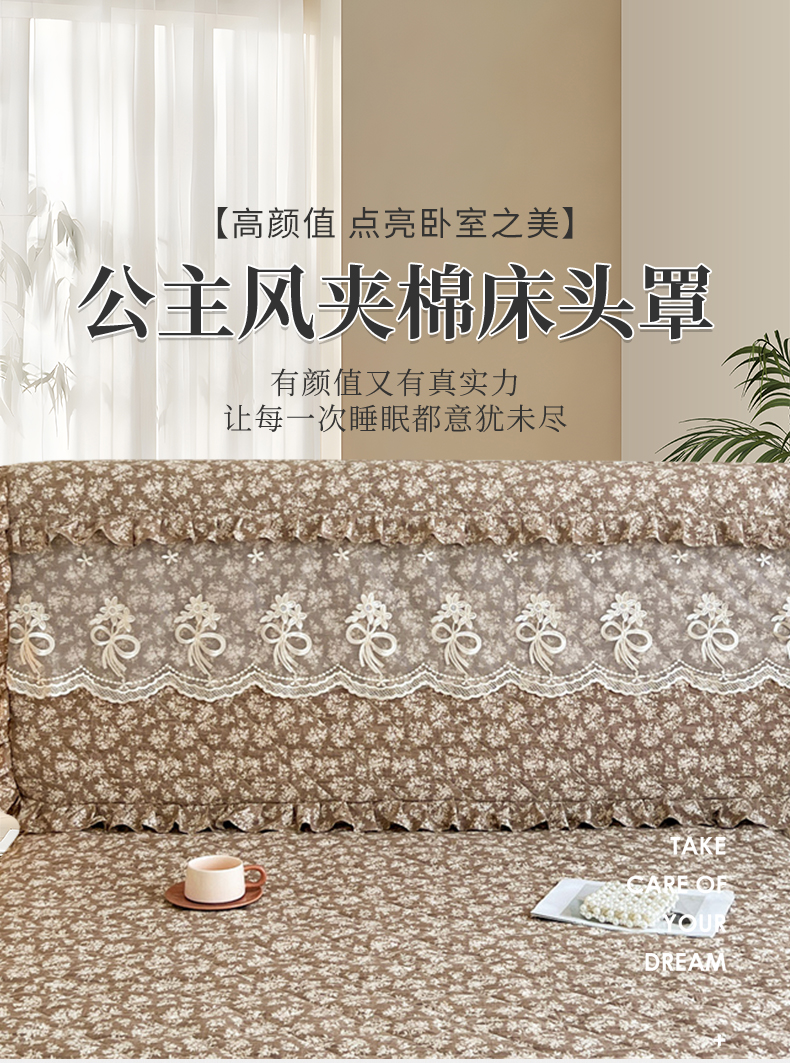 (总)十个点家纺 2025新款公主风夹棉床头罩-绫罗系列,爱意萌萌,贝贝熊,格桑花,海棠花,蝴蝶兔,花千骨,米兰,木棉花,山茶花,同心结,心相印,心愿-米