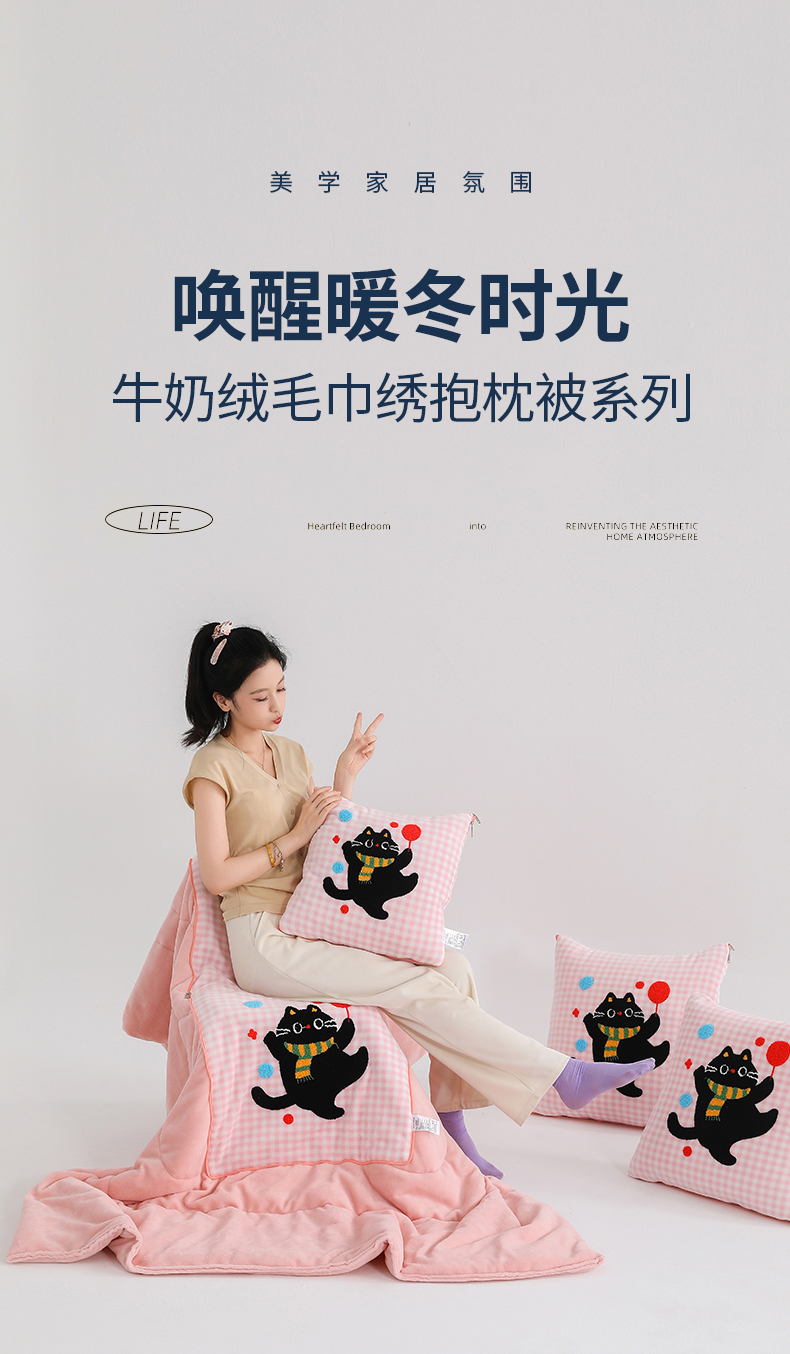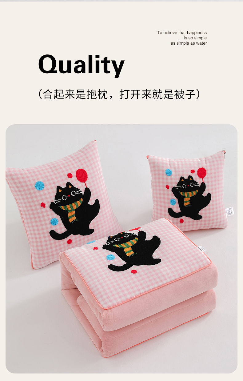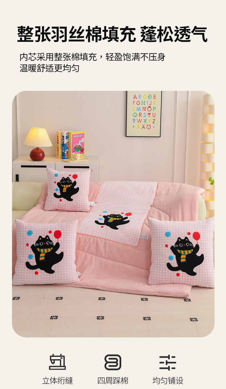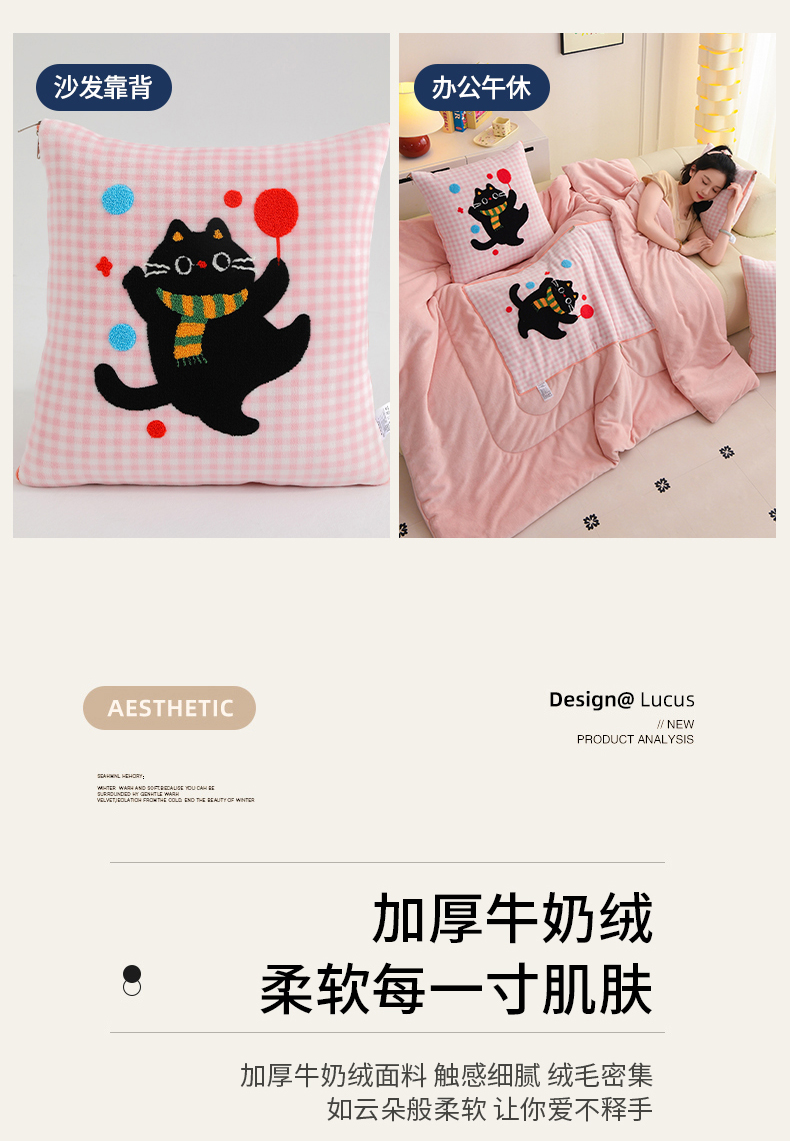 商品名称:翰轩家居 2025新款卡通牛奶绒抱枕被毛巾绣系列 气球猫-粉