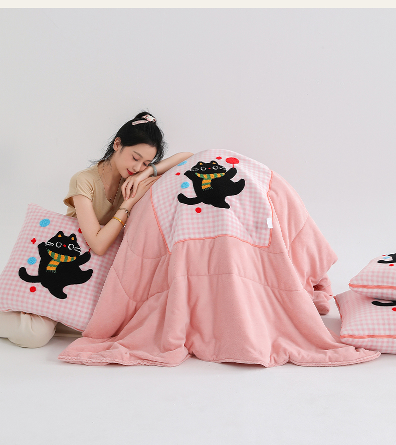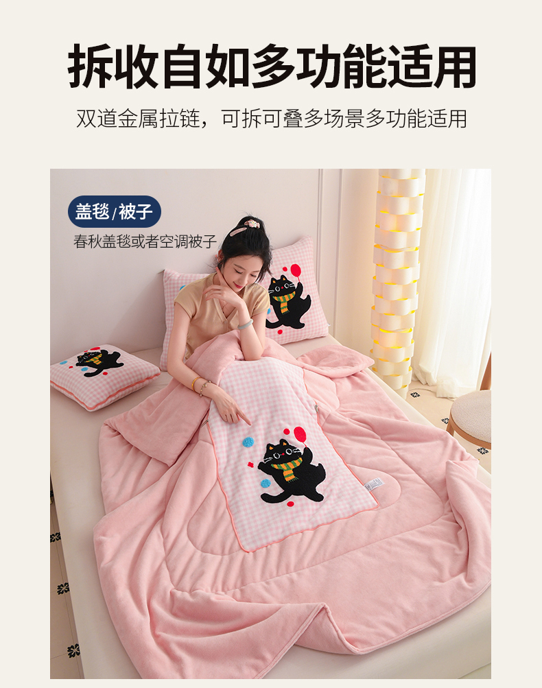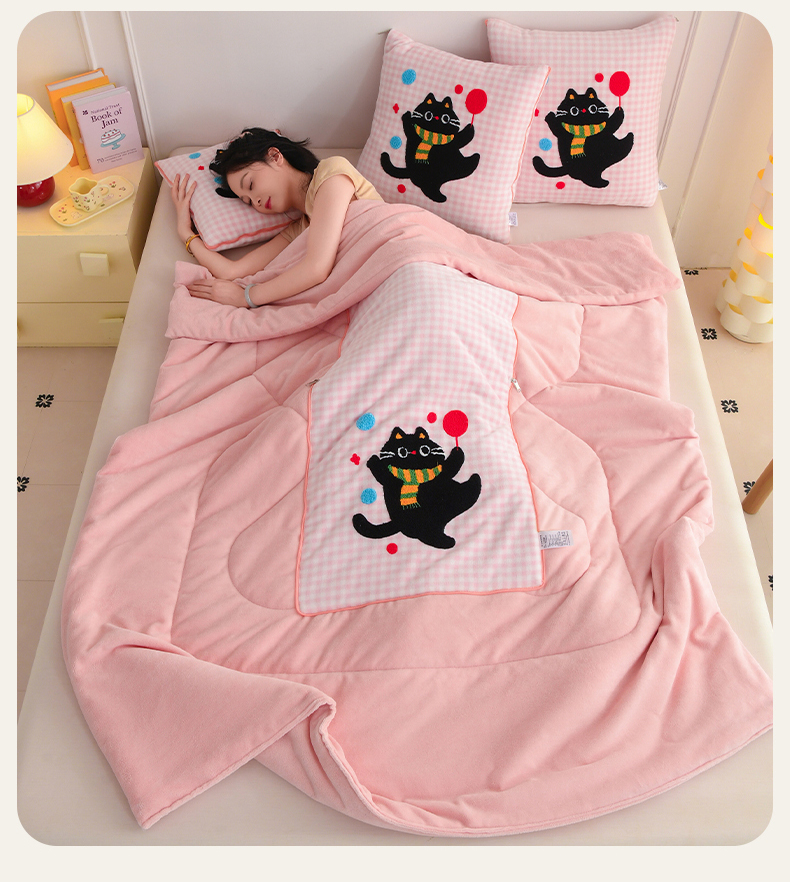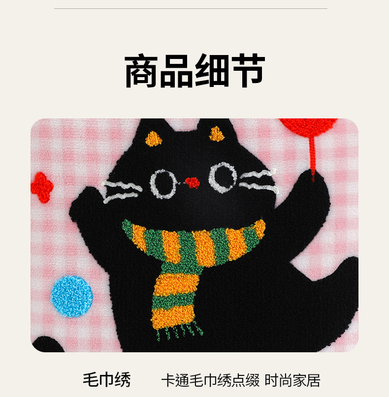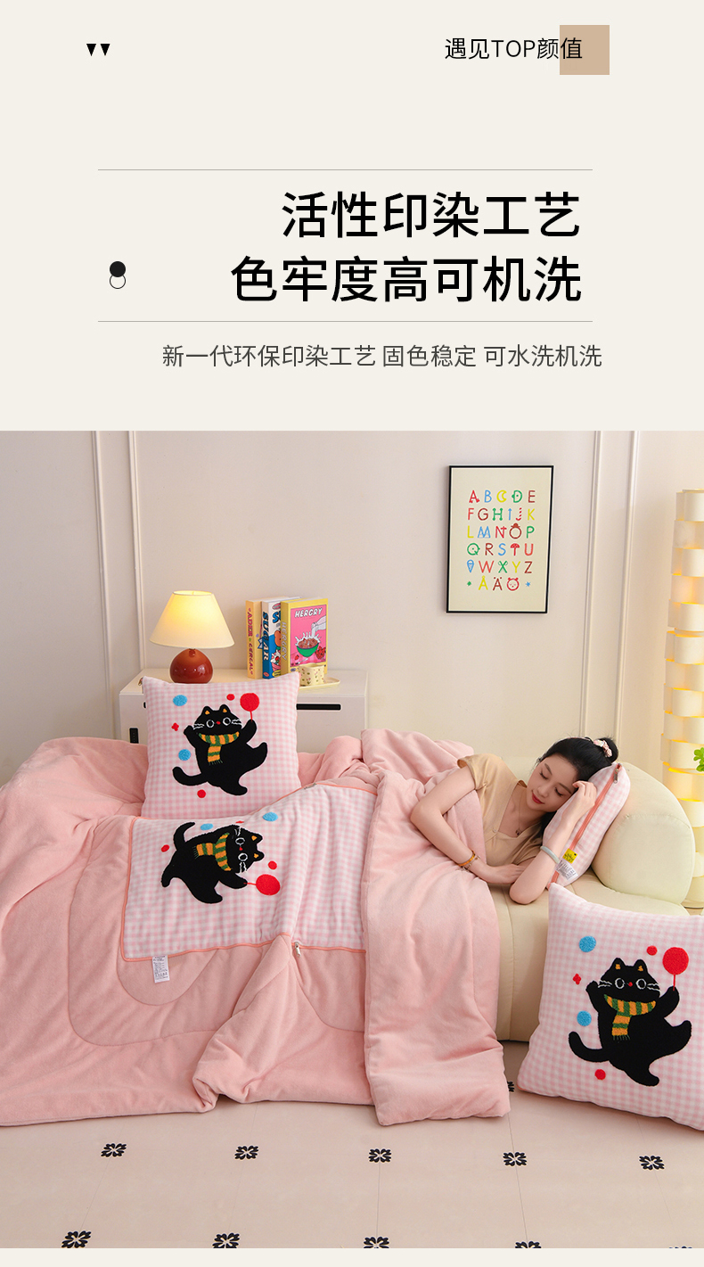 商品名称:翰轩家居 2025新款卡通牛奶绒抱枕被毛巾绣系列 气球猫-粉