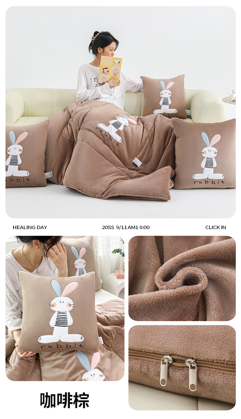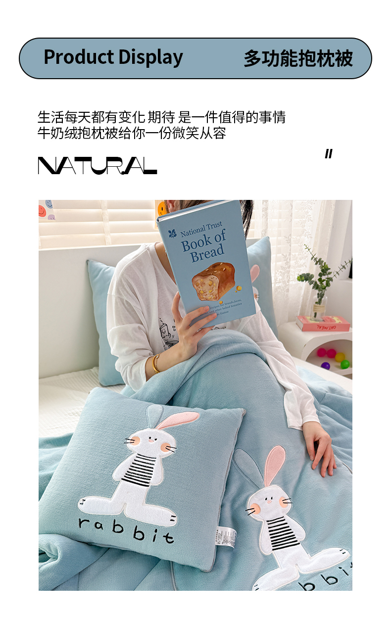 (总)翰轩家居 2025新款卡通牛奶绒贴布绣抱枕被-梦幻兔系列,梦幻兔-高级灰,梦幻兔-咖啡棕,梦幻兔-魔芋紫,梦幻兔-天空蓝,梦幻兔-樱花粉
