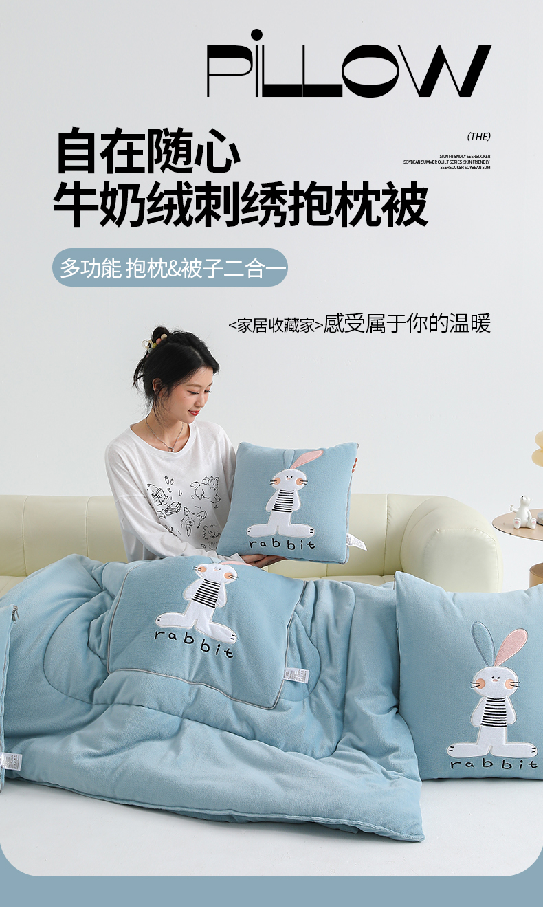 (总)翰轩家居 2023新款牛奶绒贴布绣萌萌兔抱枕被,萌兔兔-牛奶绒灰,萌兔兔-牛奶绒焦糖,萌兔兔-牛奶绒奶油蓝,萌兔兔-牛奶绒牛仔蓝,萌兔兔-牛奶绒柔粉,萌兔兔-牛奶绒蔚蓝,萌兔兔-牛奶绒云山绿