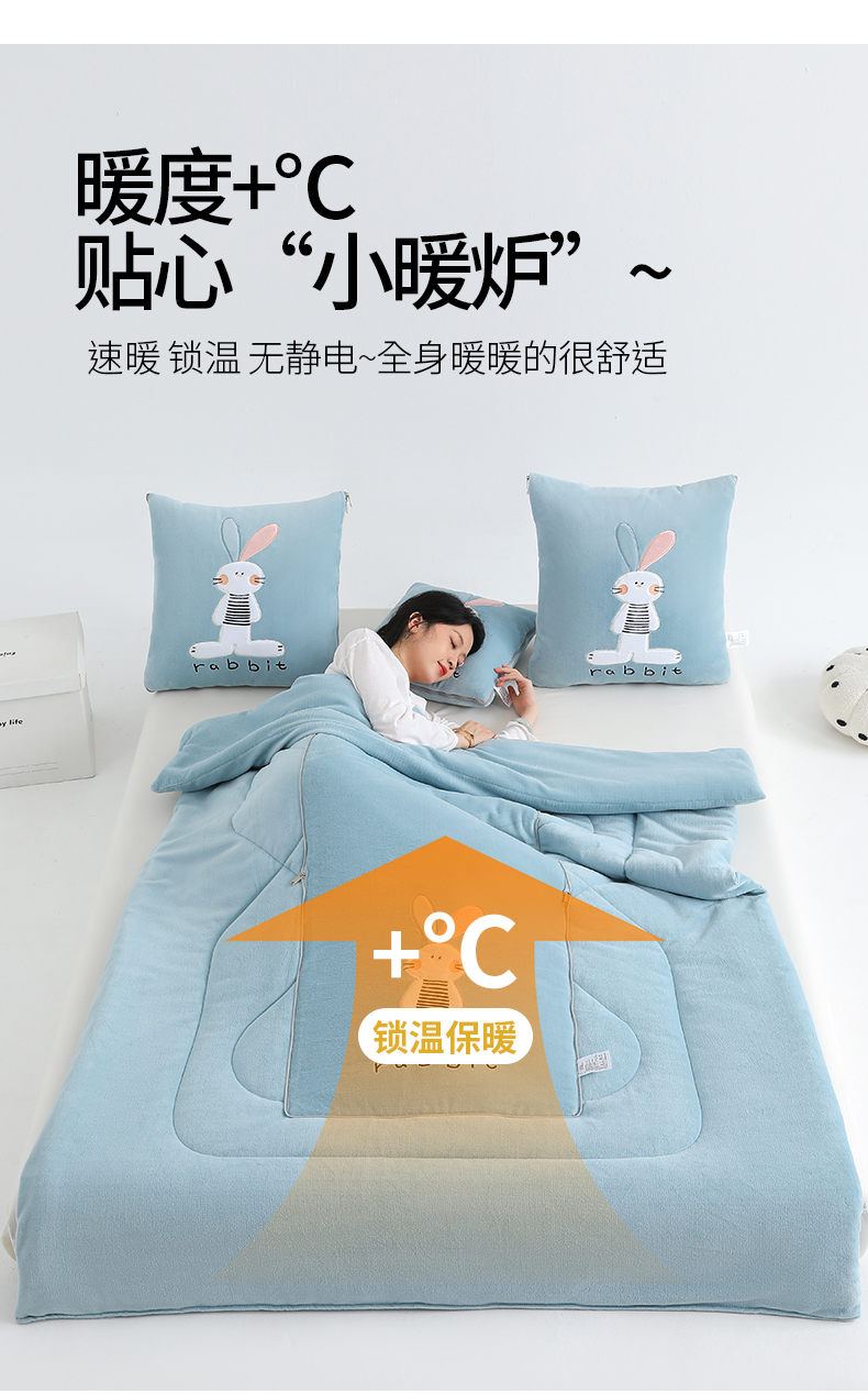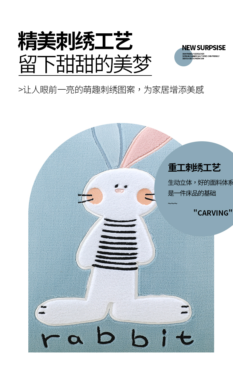 商品名称:翰轩家居 2025新款卡通牛奶绒贴布绣抱枕被-梦幻兔系列 梦幻兔-天空蓝