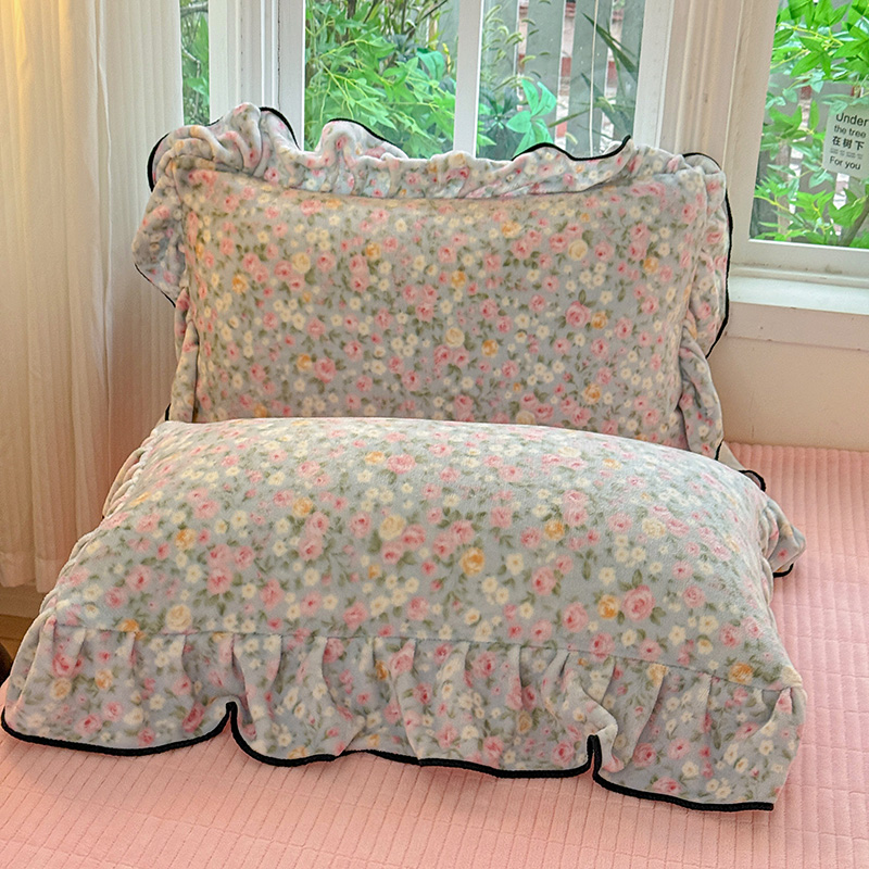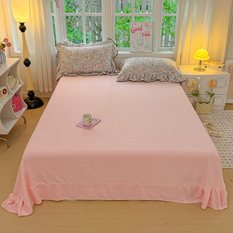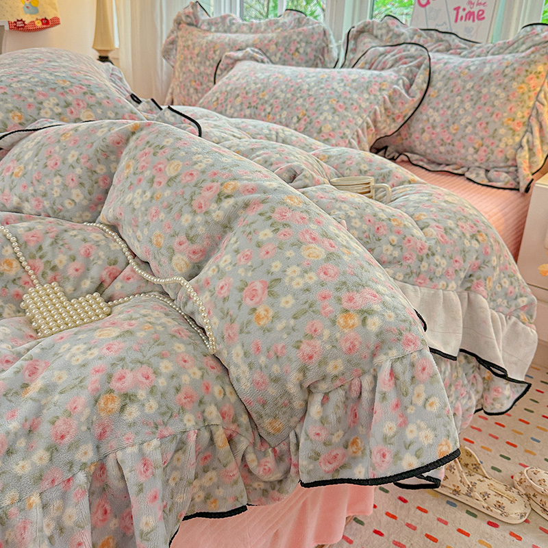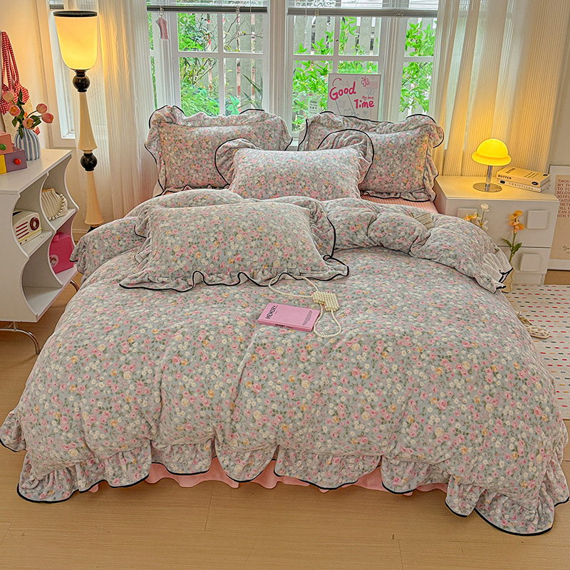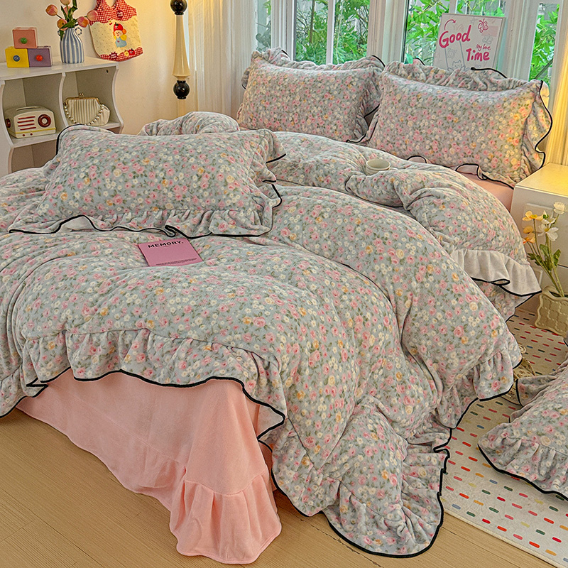 梦莱斯 2025新款加厚保暖双面牛奶绒四件套-黑色花边款 春不晚