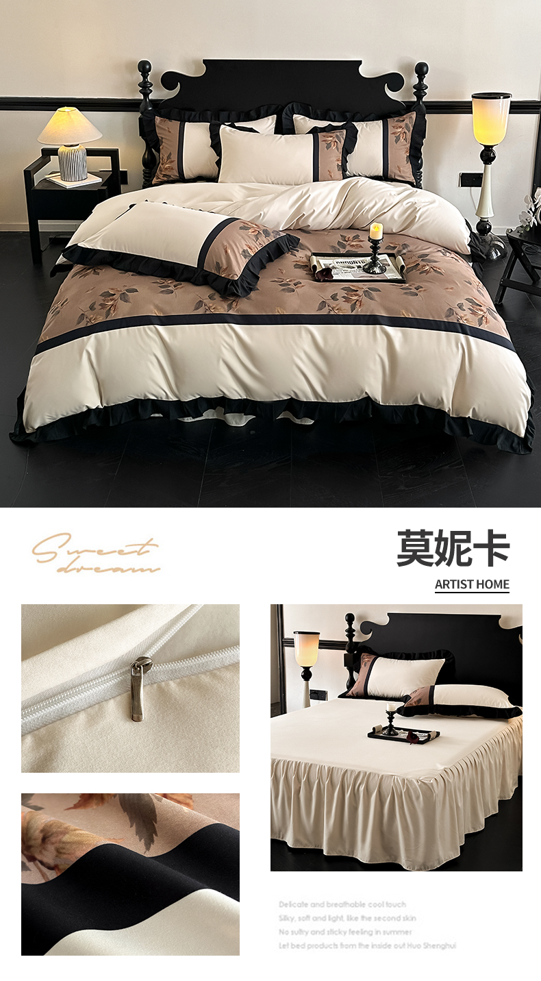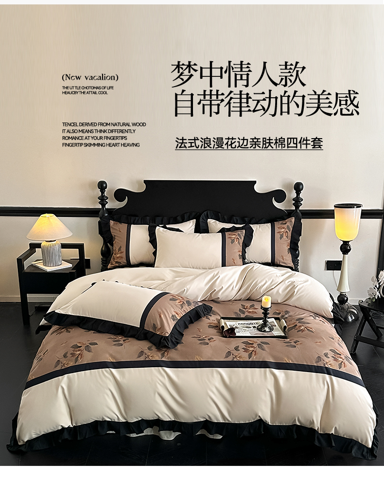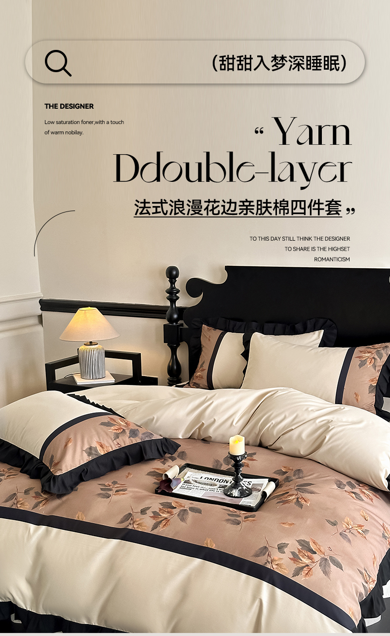 当前位置: 91家纺网 > 商品网购 > 床品套件 > 四件套 > 水洗棉四件套 > 一左一右 2025秋冬新款数码印花法式复古风花边亲肤棉磨毛水洗棉床笠床裙四件套-香澜花园 莫妮卡