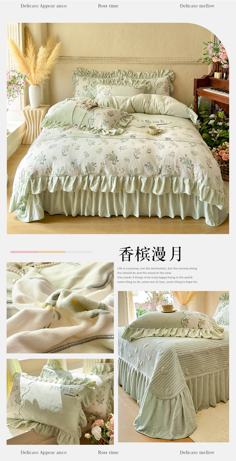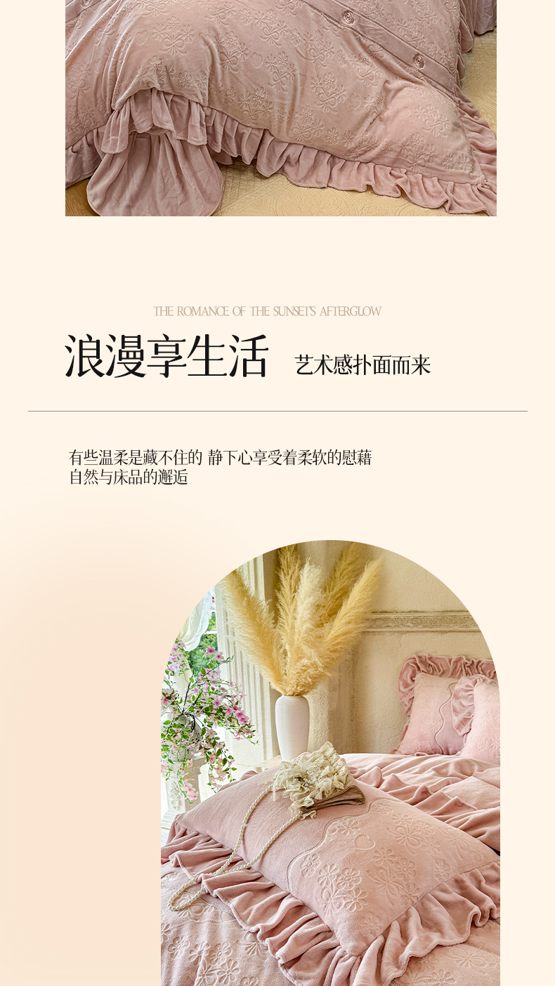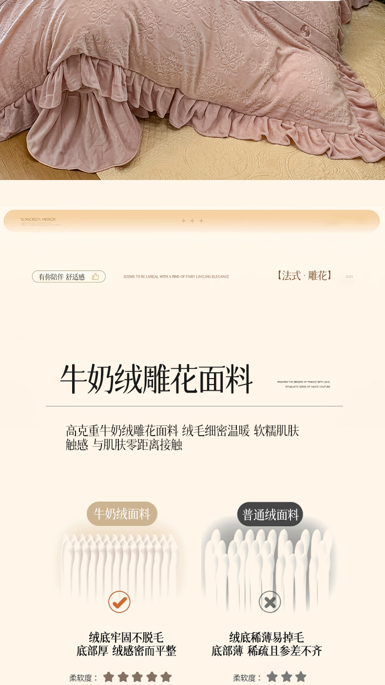 (总)宜凡家纺 2025新款兔绒提花牛奶绒夹棉床裙四件套,爱心 少女粉,爱心 粉紫,爱心 驼色,蝶舞 大红,蝶舞 米色,蝶舞 浅紫,蝶舞 玉色,简爱 苍青,简爱 豆沙紫,简爱 玉色,樱桃 苍青,樱桃 豆沙紫,樱桃 奶油白