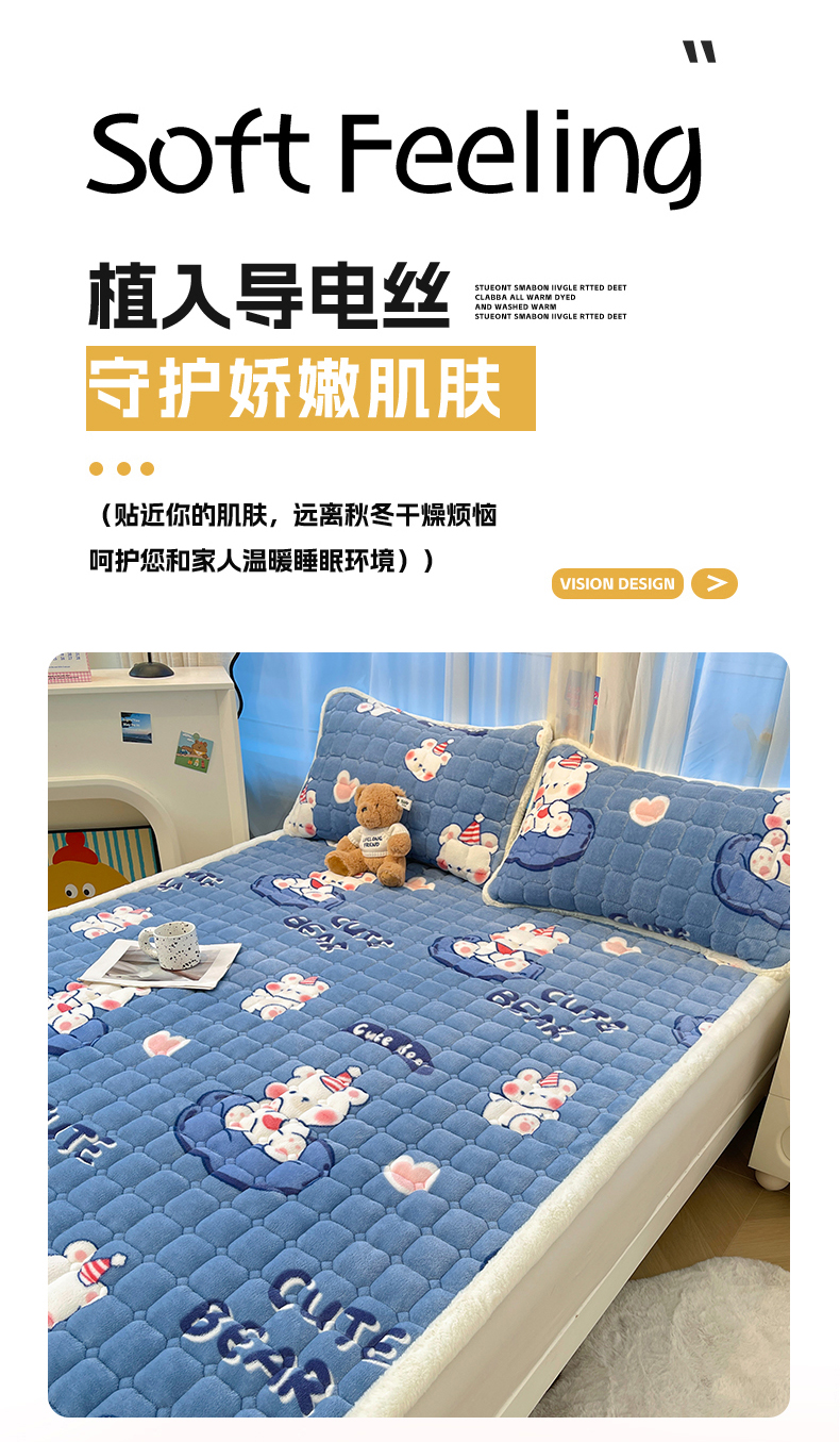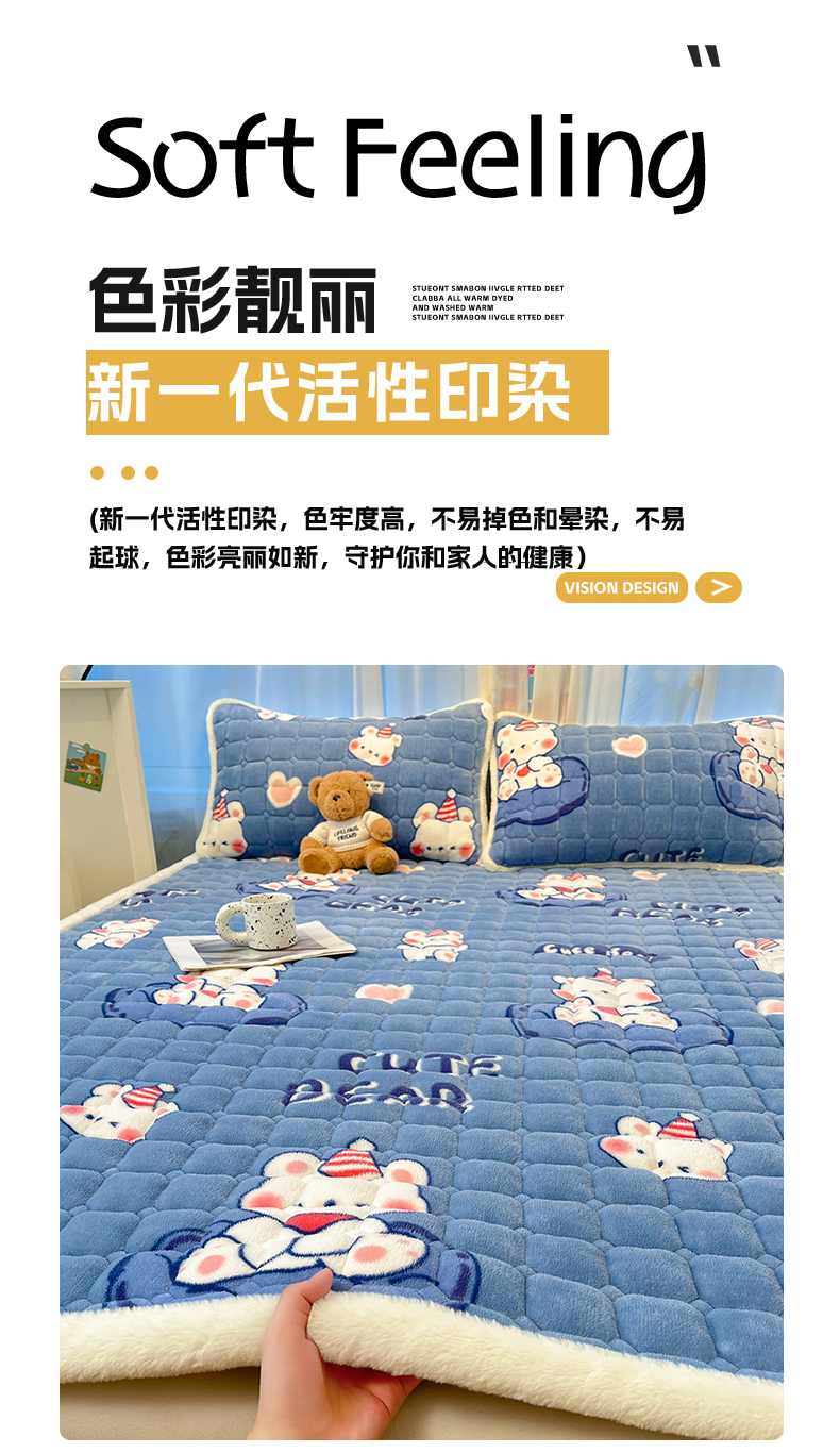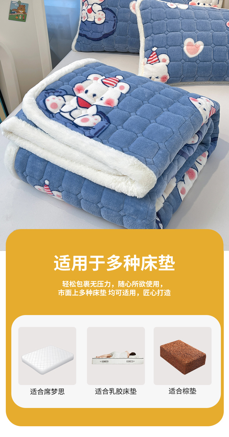 当前位置: 91家纺网 > 商品网购 > 床垫/床褥 > 珊瑚绒床垫 > 梵朴 2025新款牛奶绒夹棉床垫床褥加厚珊瑚绒床护垫-印花系列(大床图) 元气小熊