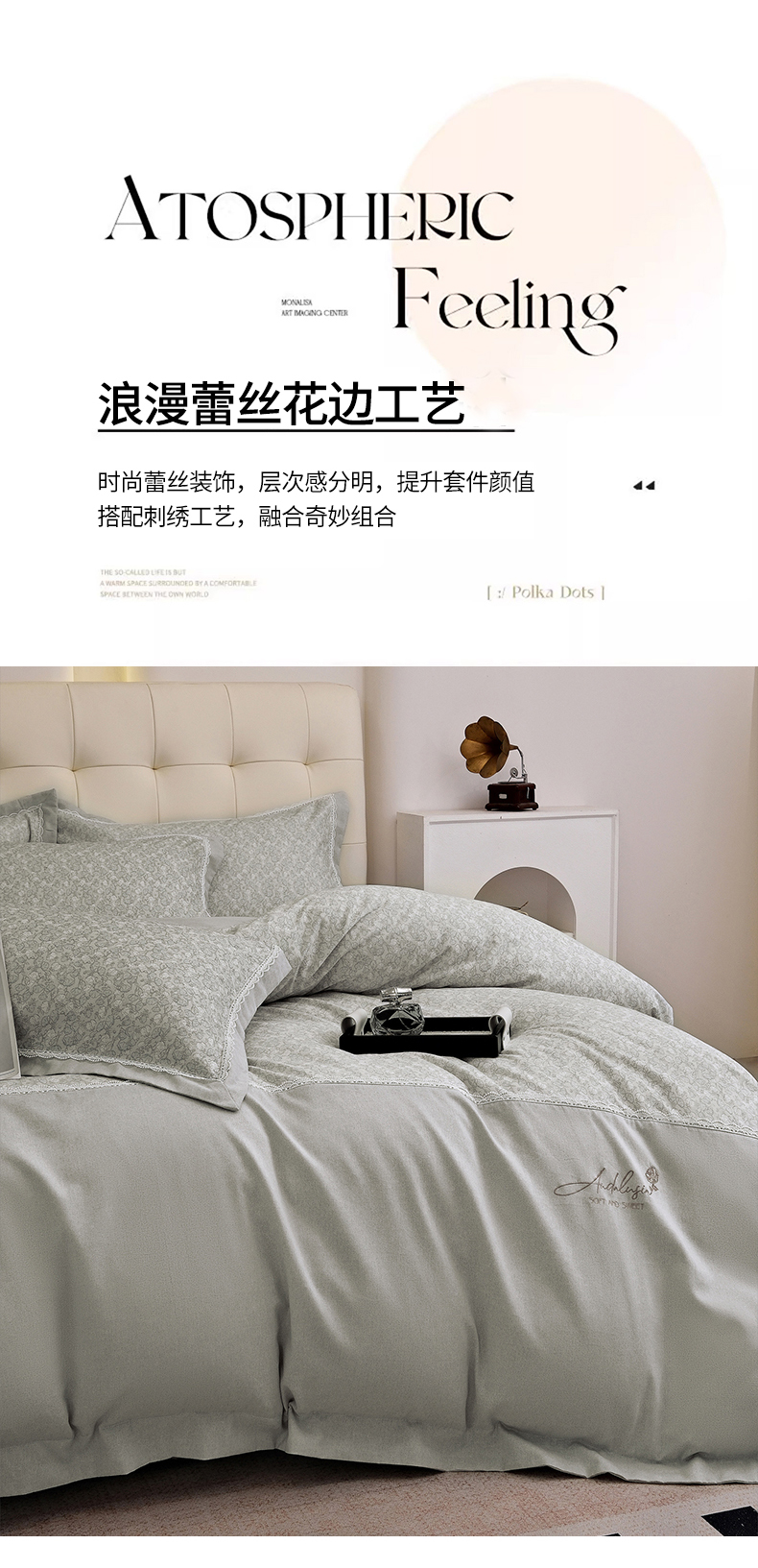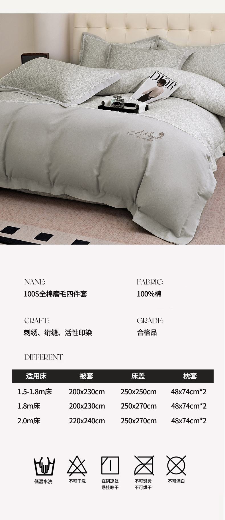 商品名称:OL家纺 2025新款100s全棉磨毛印染加刺绣四件套(控价1.5/1.8标准被套折券后368元!!!) 高尚灰