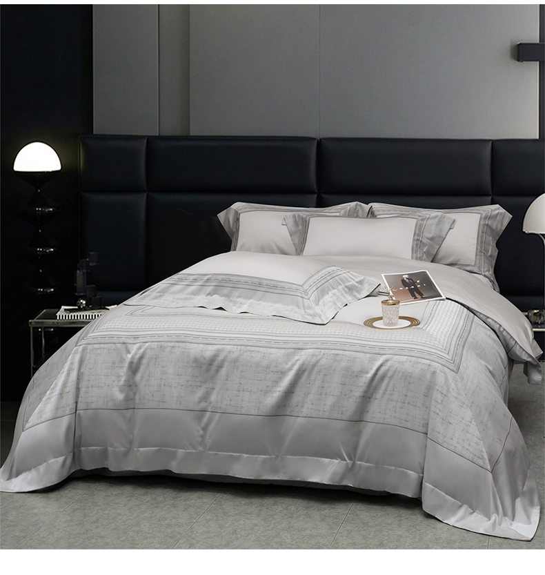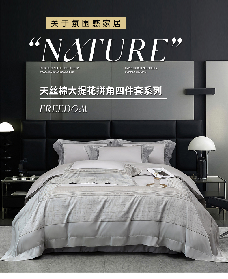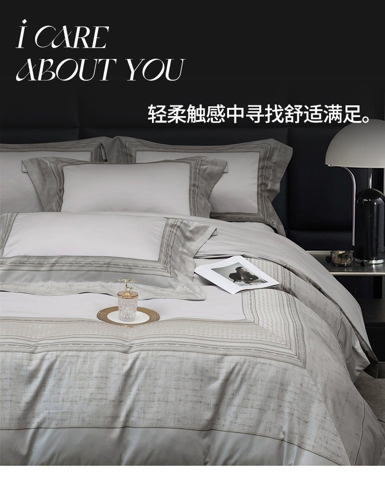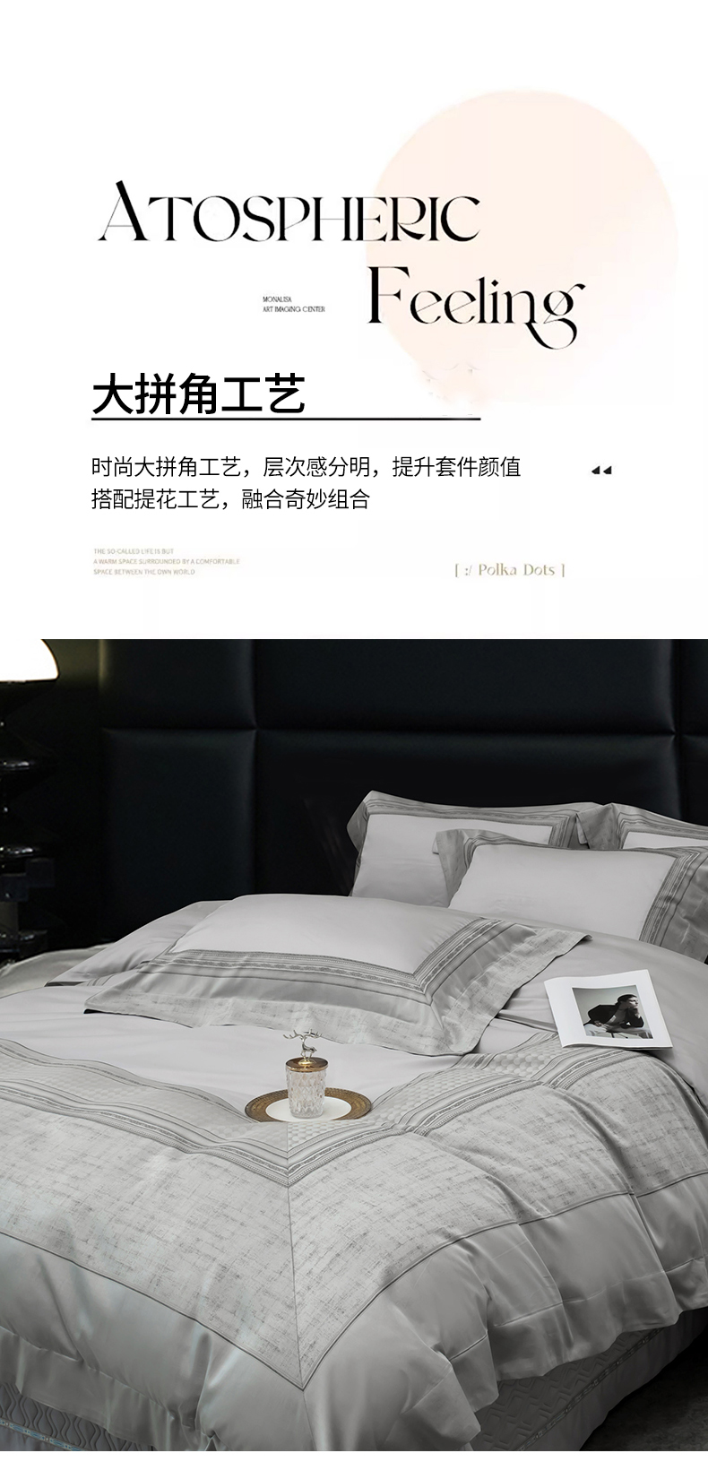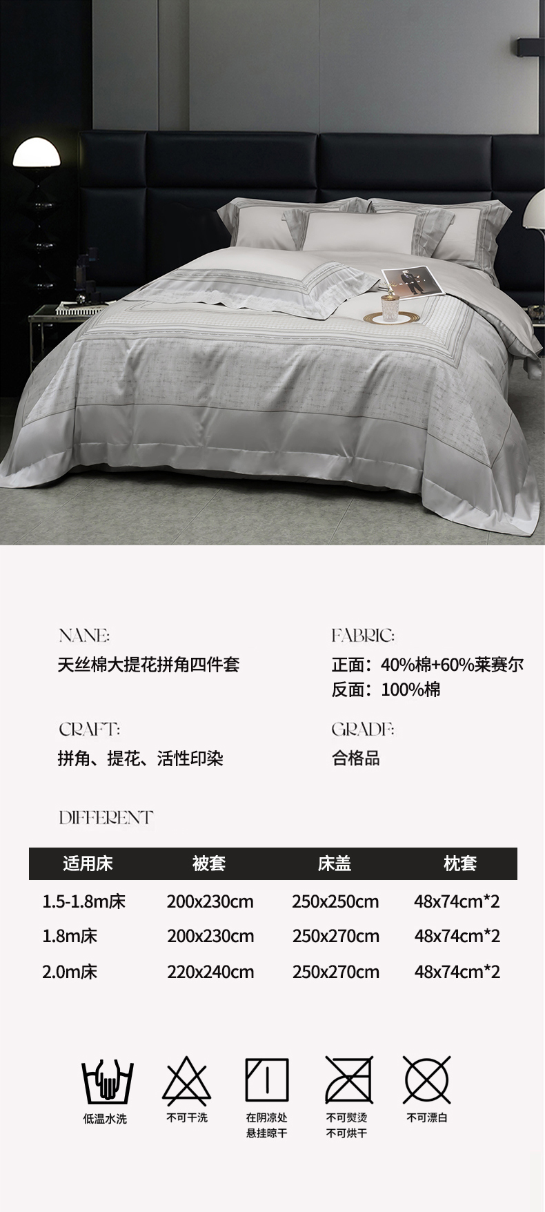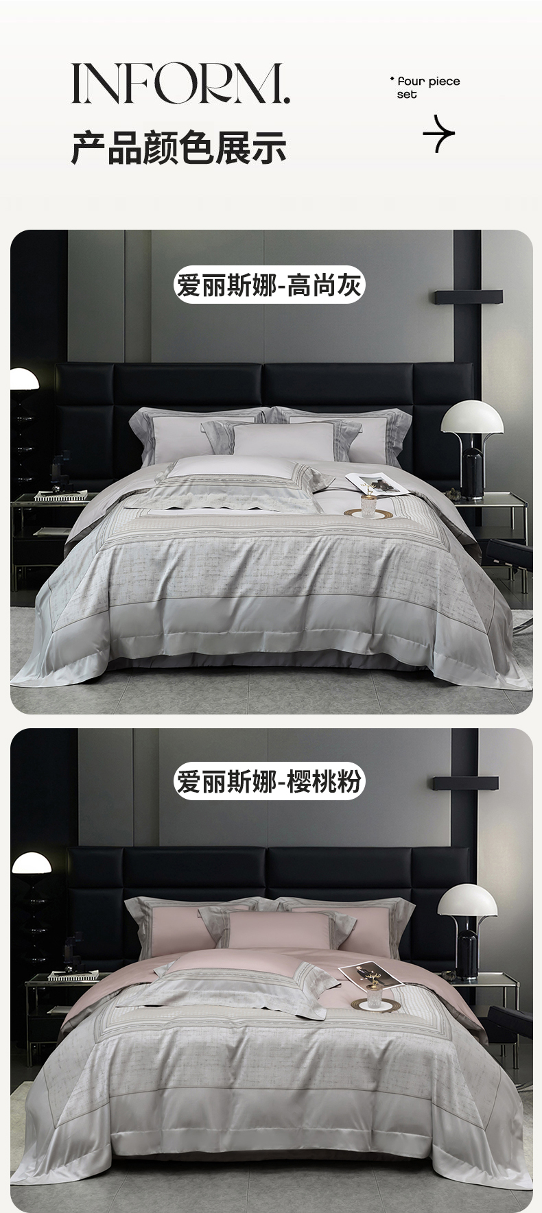 商品名称:OL家纺 2025新款天丝棉拼角四件套-爱丽斯娜(控价1.5/1.8标准被套折券后498元!!!) 爱丽斯娜-高尚灰