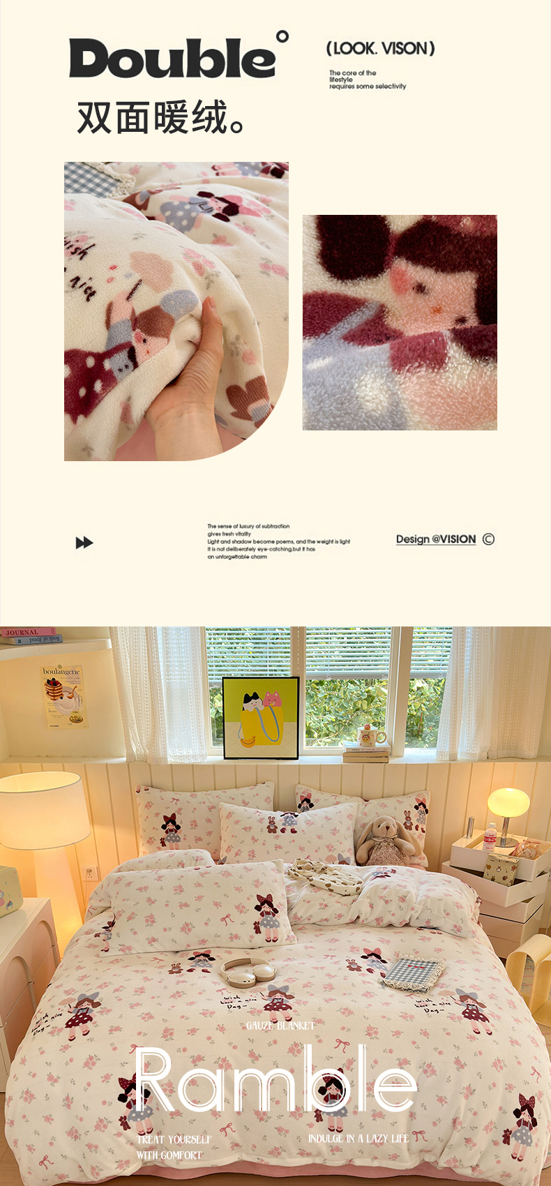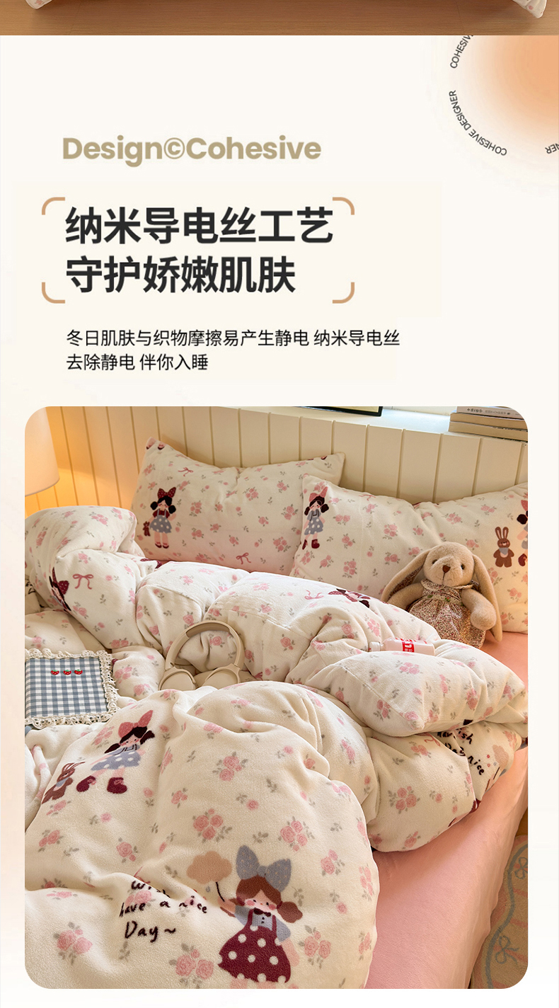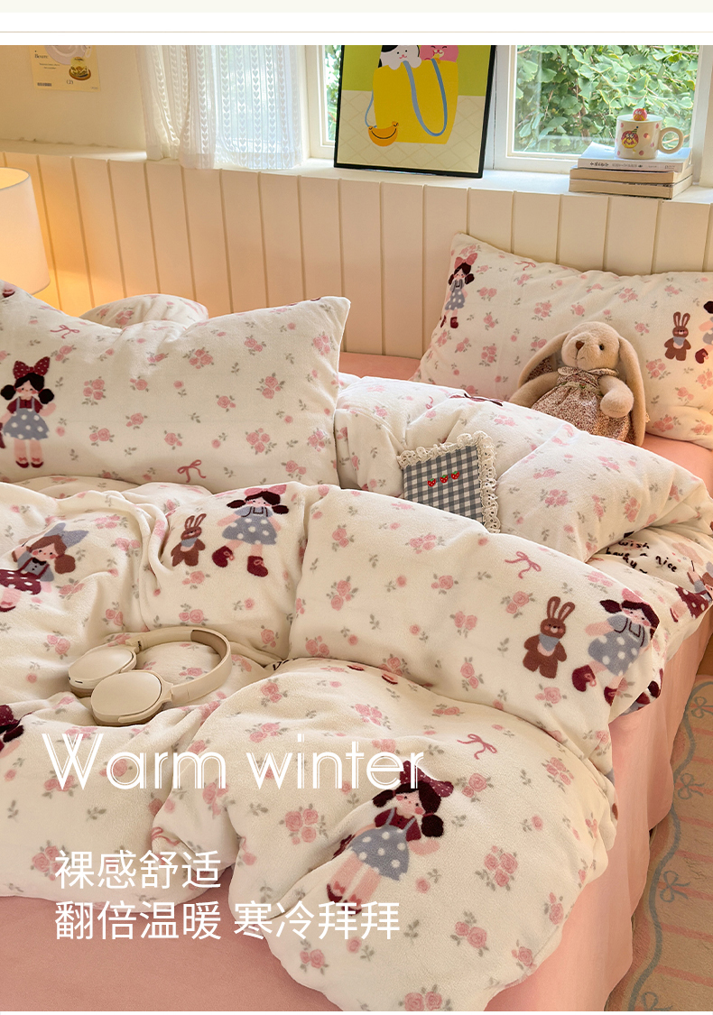 • 91家纺网 家纺一手货源 找家纺 丽美人家纺 (全尺寸不缺货)2025新款双面高克重牛奶绒被套单件被罩 玫瑰女孩