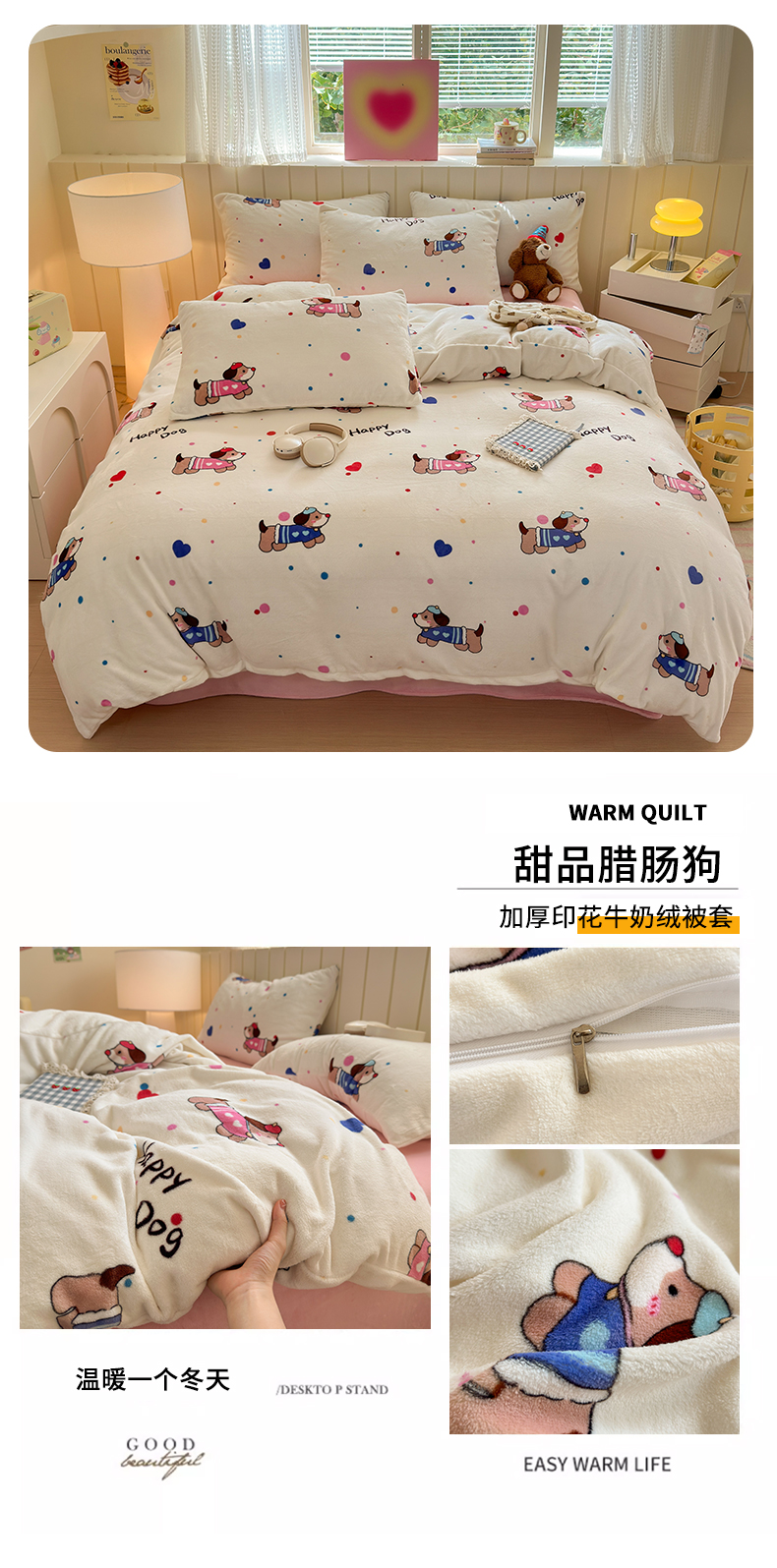 (总)丽美人家纺 2025新款小版印花牛奶绒四件套,拼布蝴蝶兔,山茶花语-粉,水墨花蝴蝶,甜品腊肠狗,甜心猫咪-蓝,英伦小狗,油画小萌物,春风沐歌,春日女孩,复古山茶,格子小狗,花边小兔,可爱小猫,玫瑰女孩,萌熊日记,奶萌小猫
