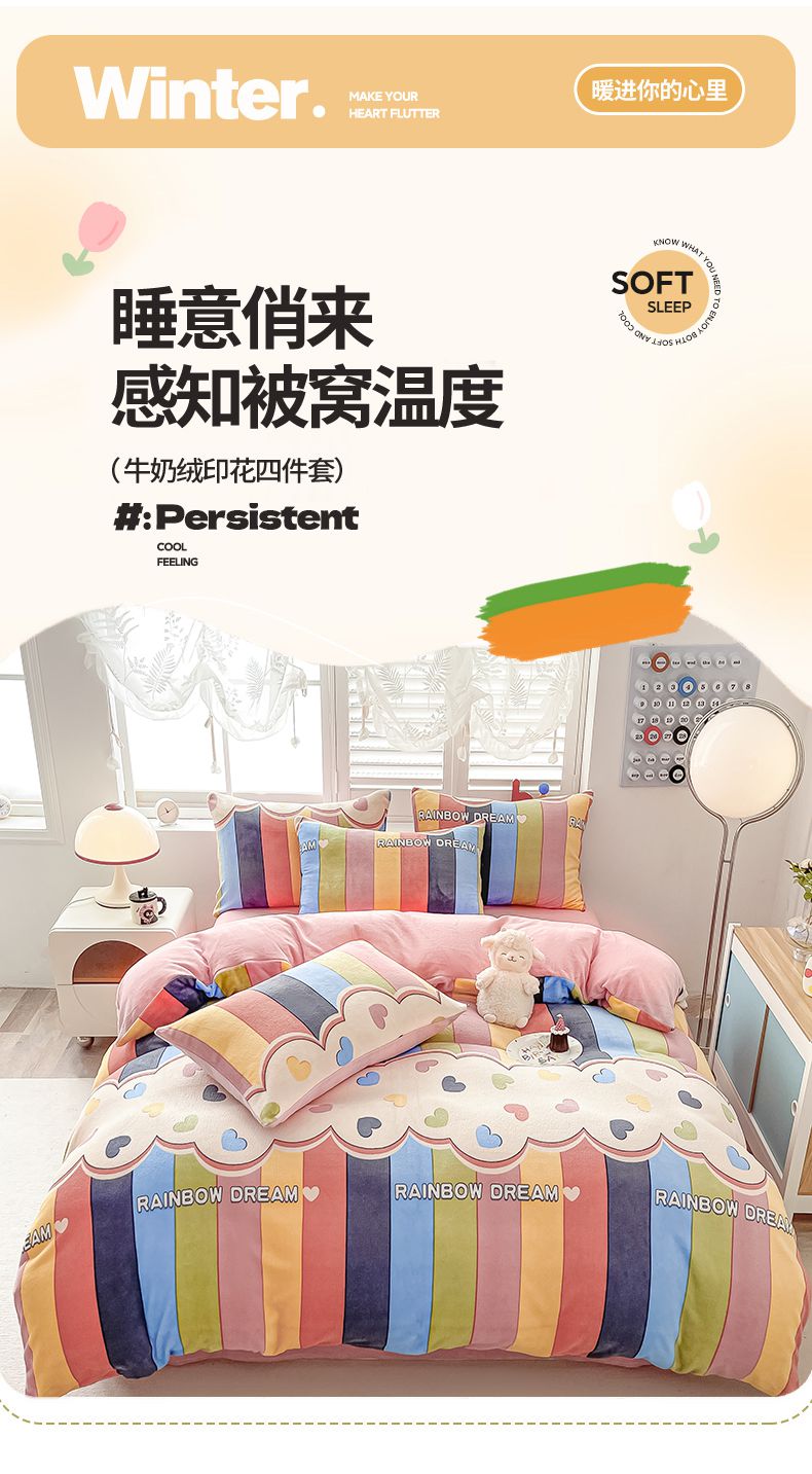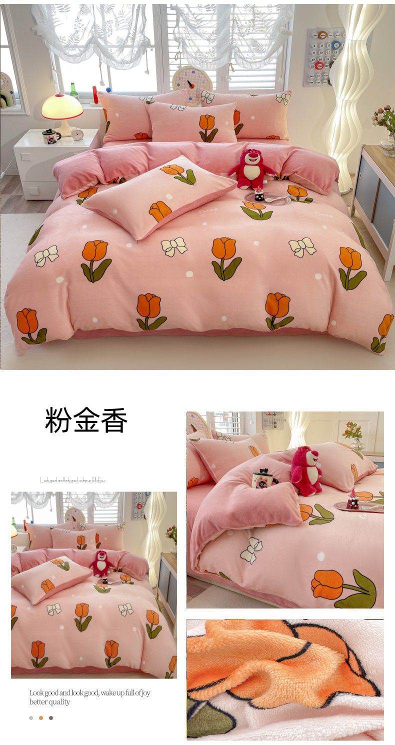 梵克保罗 2025新款牛奶绒四件套金貂绒法莱绒加厚保暖直播电商热款 支持跨境电商 墨儿本