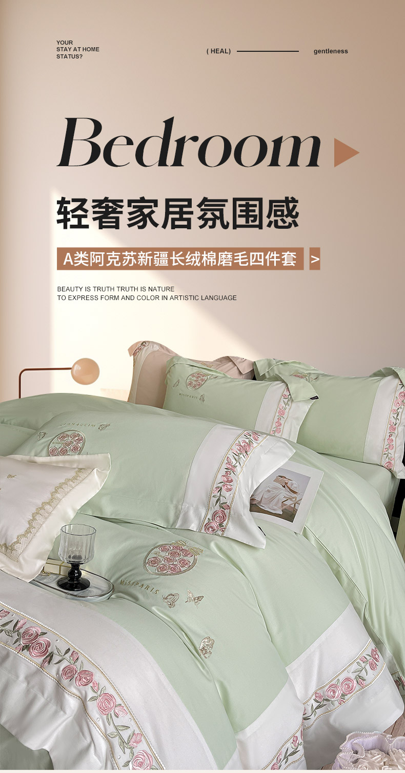当前位置: 91家纺网 > 商品网购 > 床品套件 > 四件套 > 长绒棉四件套 > 冬季爆款A类长绒棉加厚磨毛全棉纯棉保暖高端重工刺绣全工艺被套床单轻奢床上用品 花巷-茶绿