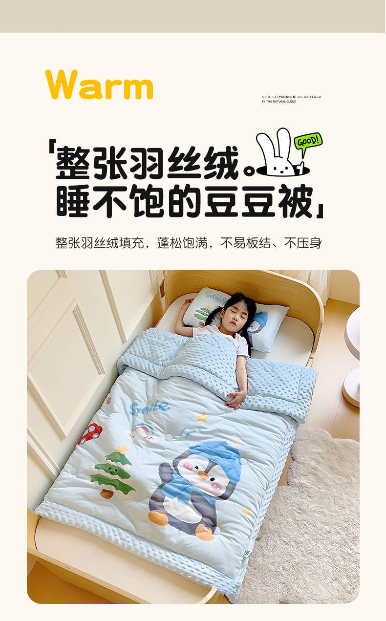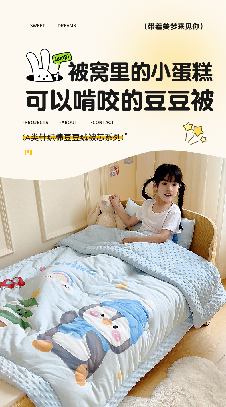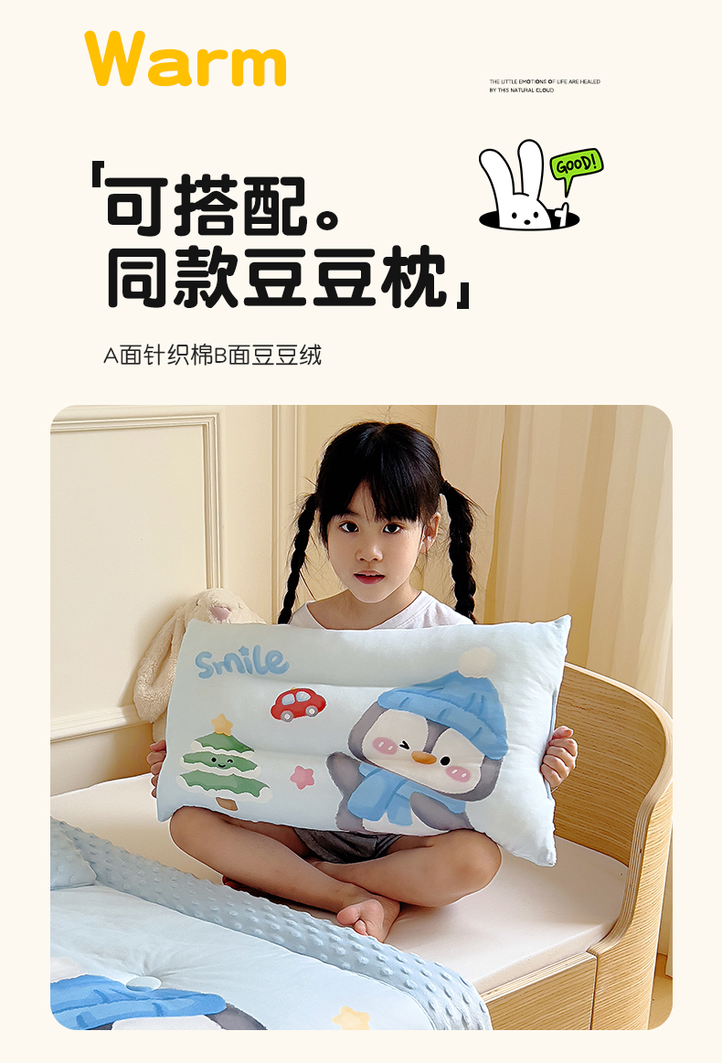 商品名称:鱼宝 2025新款大版针织棉豆豆被被子被芯 小企鹅