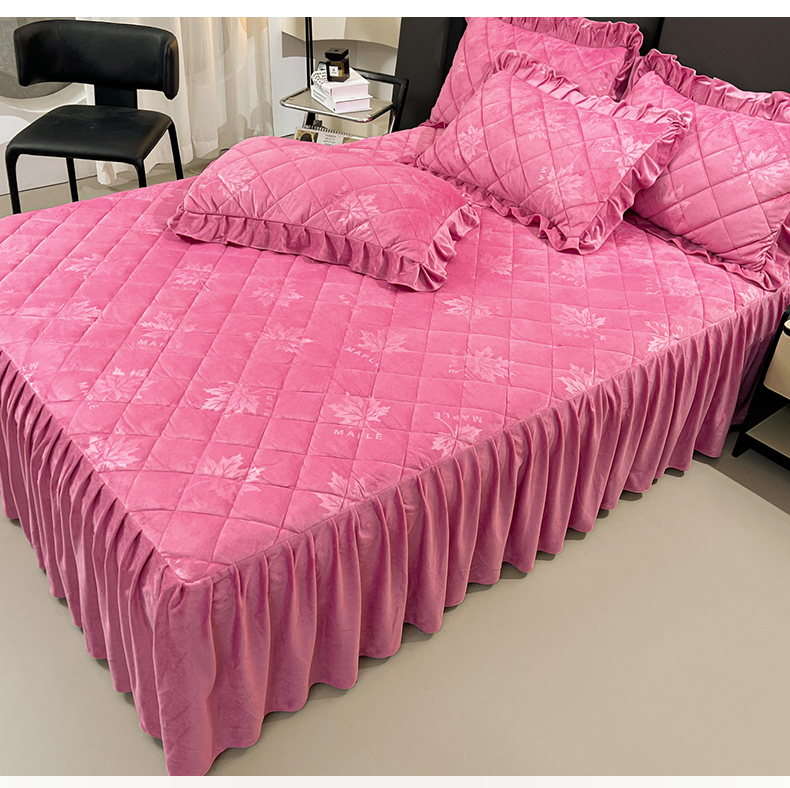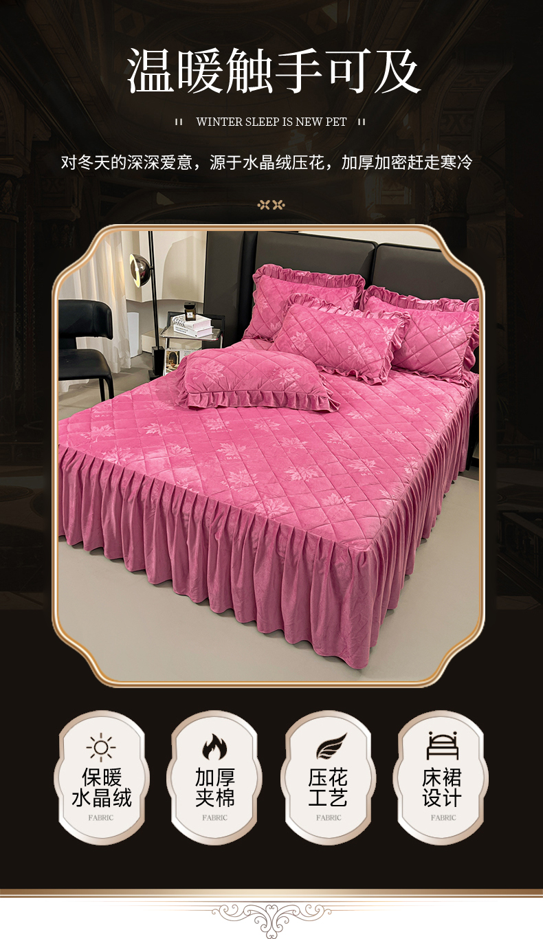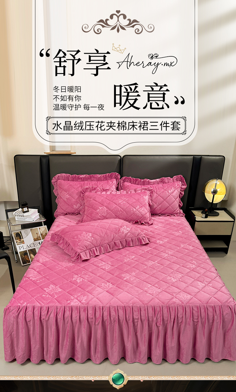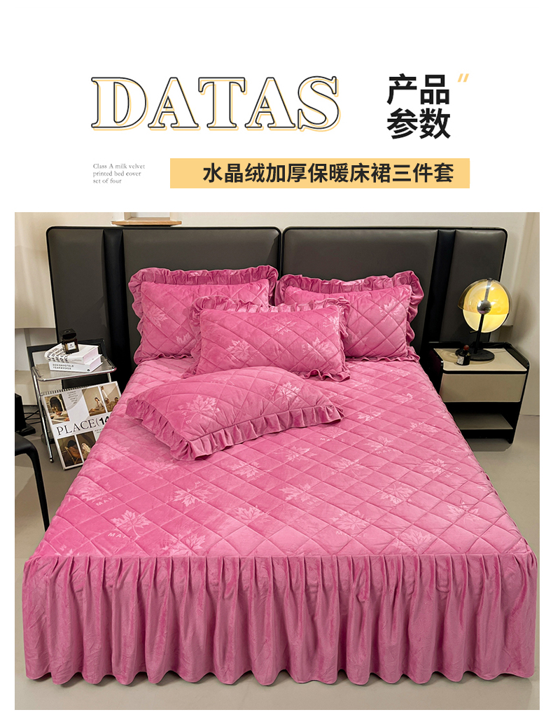 当前位置: 91家纺网 > 商品网购 > 床品套件 > 三件套 > 屹成家纺 2025新款压花水晶绒床裙三件套 (床裙单件不低于95元起) 豆沙