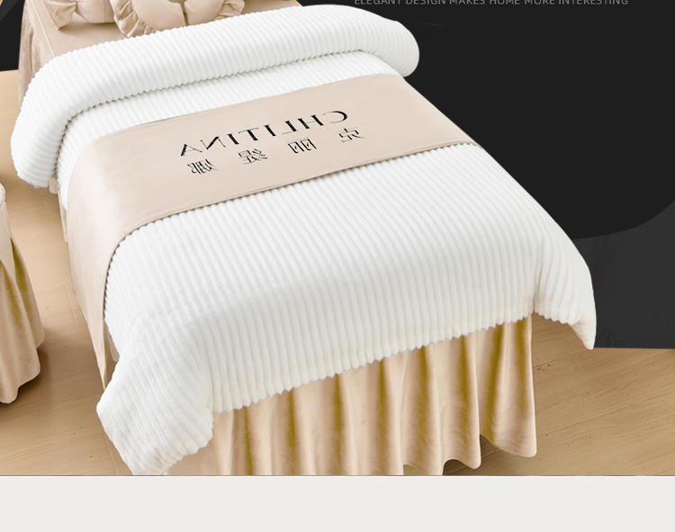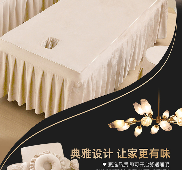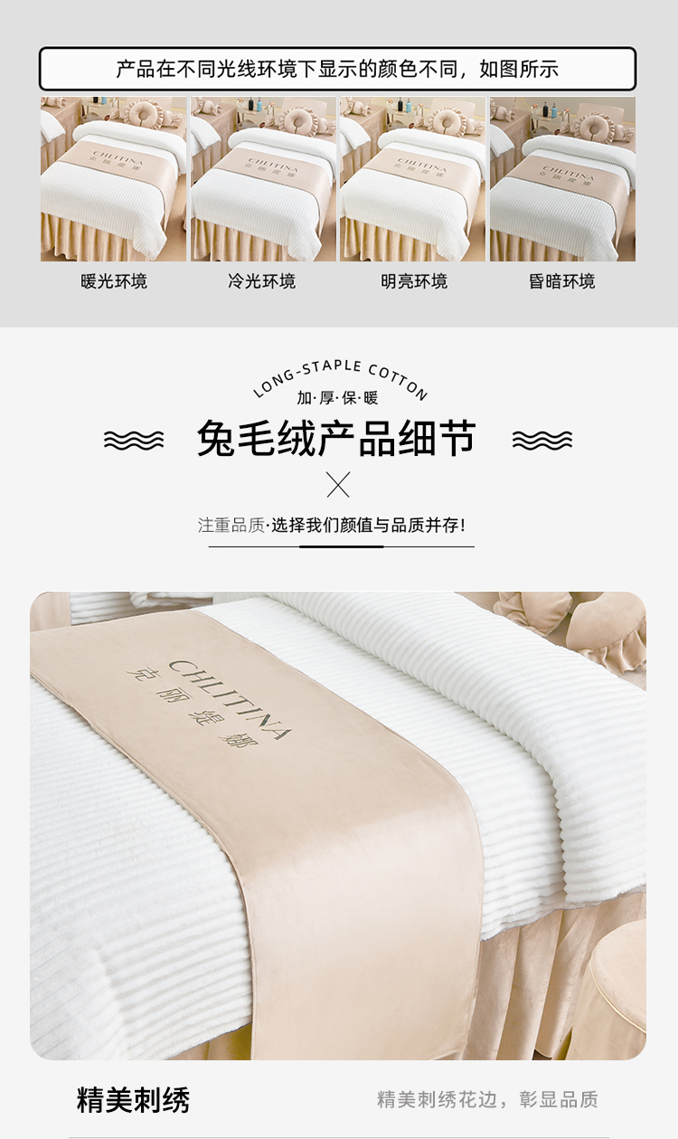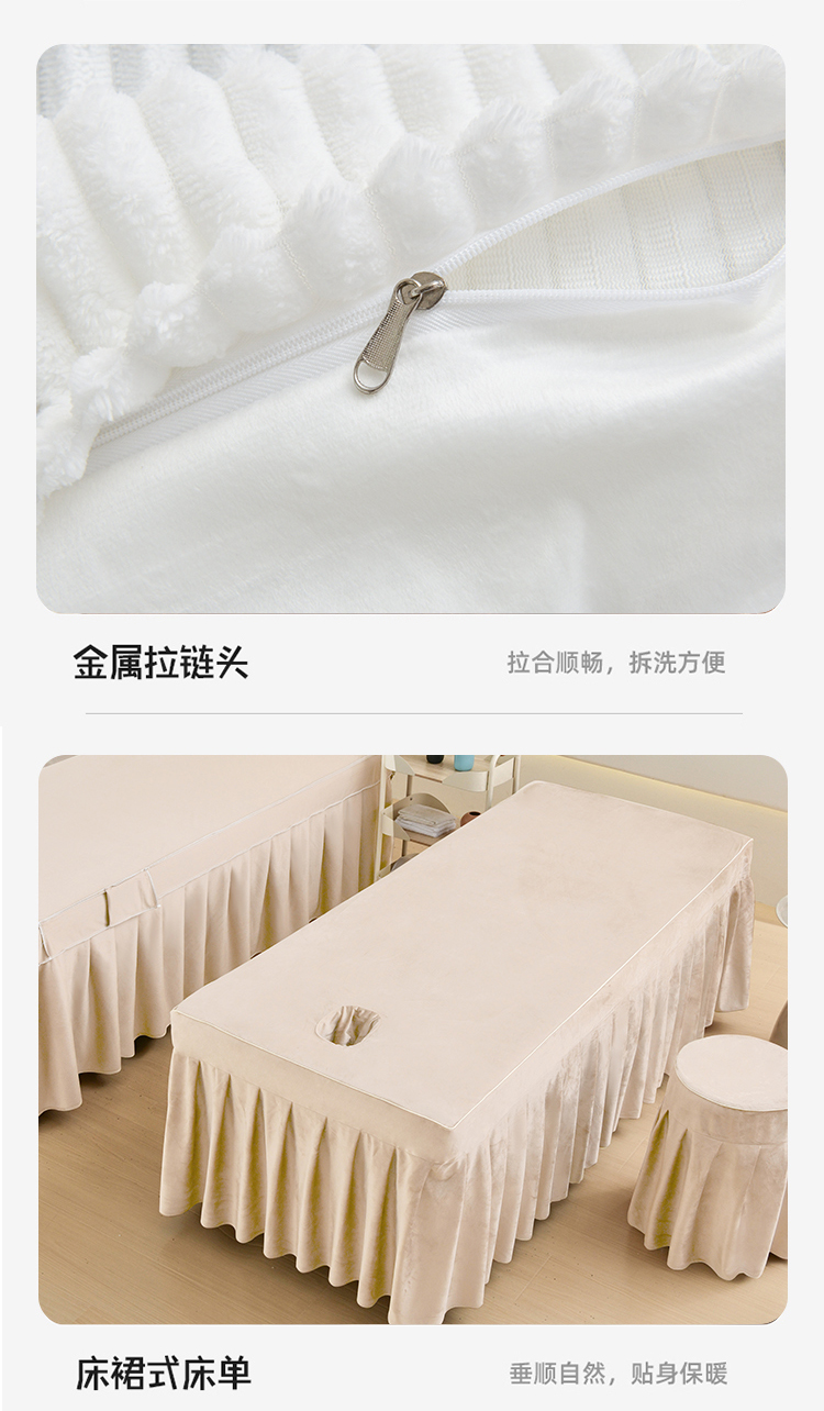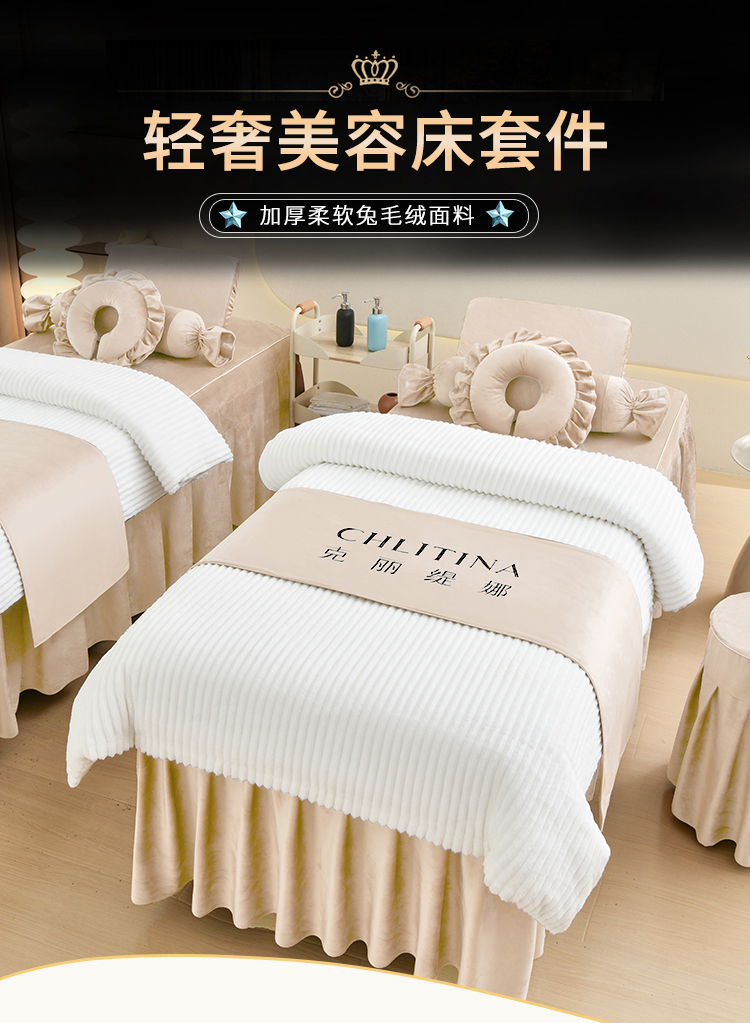 商品名称:诗薇娅 2025新款加厚兔毛绒美容床罩 美容床罩四件套 白配浅卡其