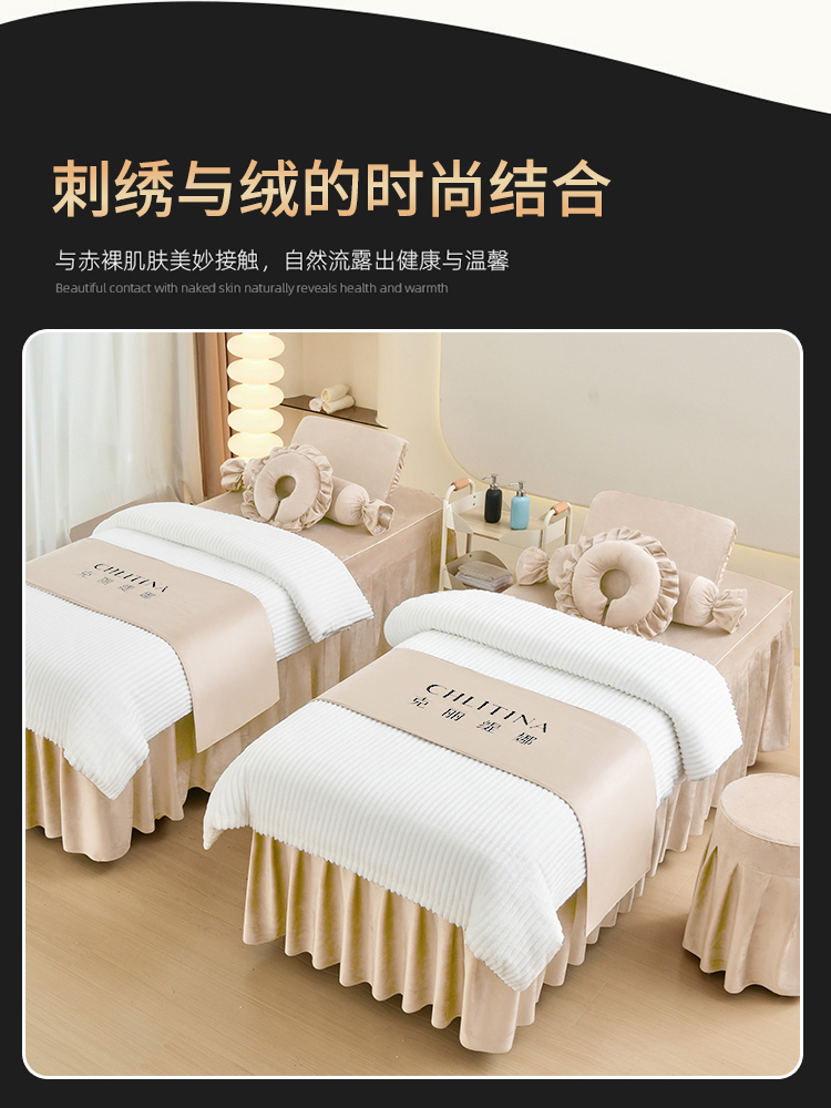 (总)诗薇娅 2025新款加厚兔毛绒美容床罩 美容床罩四件套,白+粉玉,白+红豆沙,白+咖色,白+卡其,白+墨绿,白+暖豆沙,白+深灰,白+紫色,本白,卡其,白配浅卡其,浅卡其,深灰色
