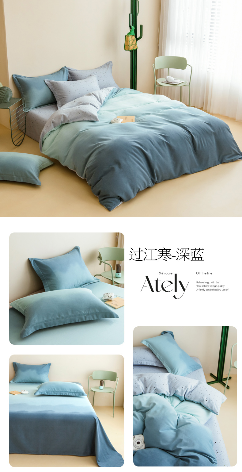 当前位置: 91家纺网 > 商品网购 > 床品套件 > 四件套 > 全棉普通四件套 > 印季家纺 2025新款全棉纯棉加厚渐变混纺磨毛四件套-过江寒 过江寒-深蓝