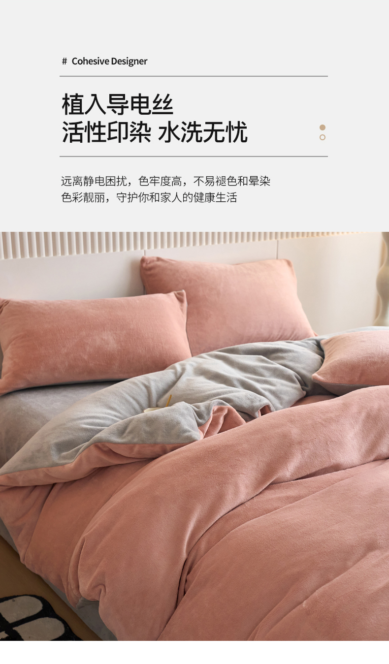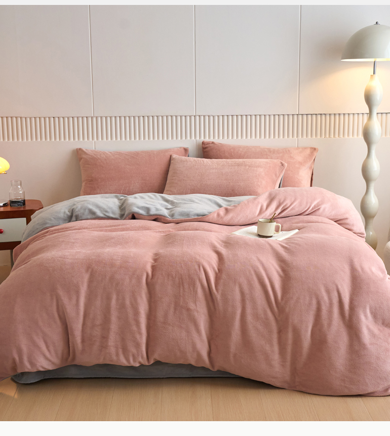 当前位置: 91家纺网 > 商品网购 > 床品套件 > 四件套 > 牛奶绒四件套 > 乐居家纺 2025新款200克重纯色单面绒牛奶绒四件套 星柚粉+绅士灰