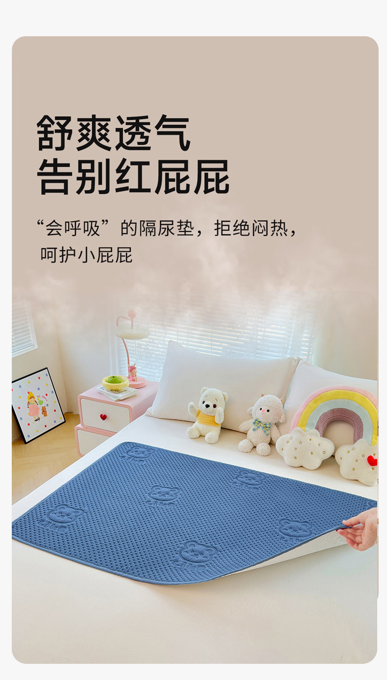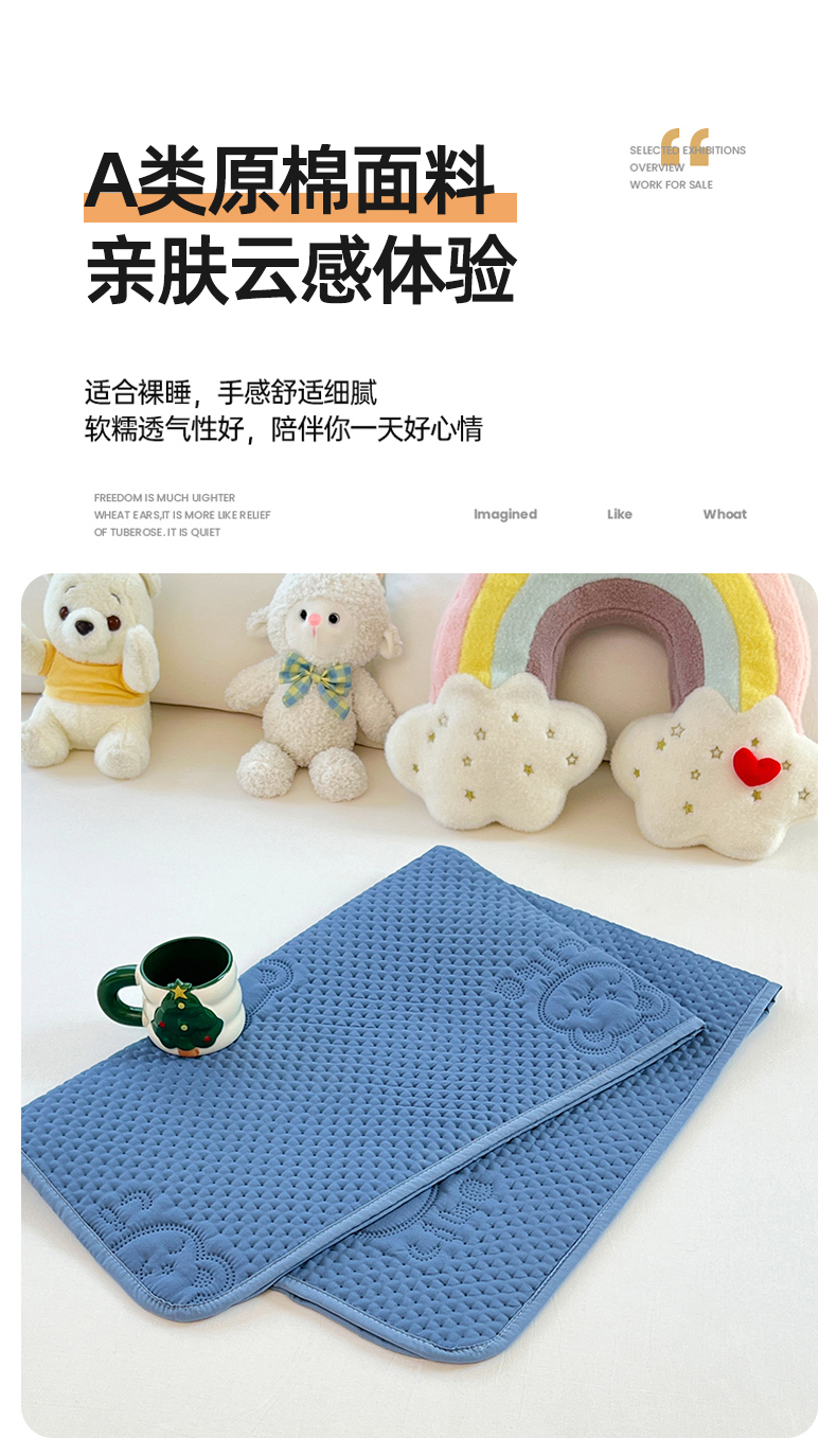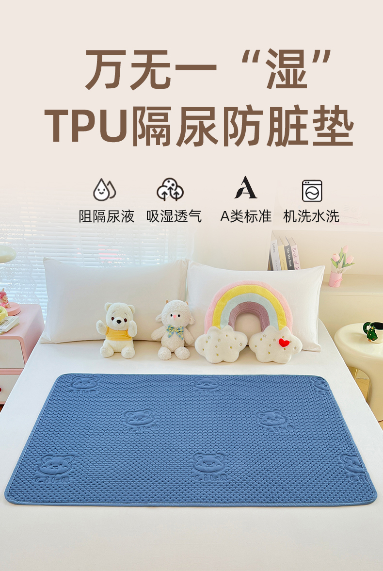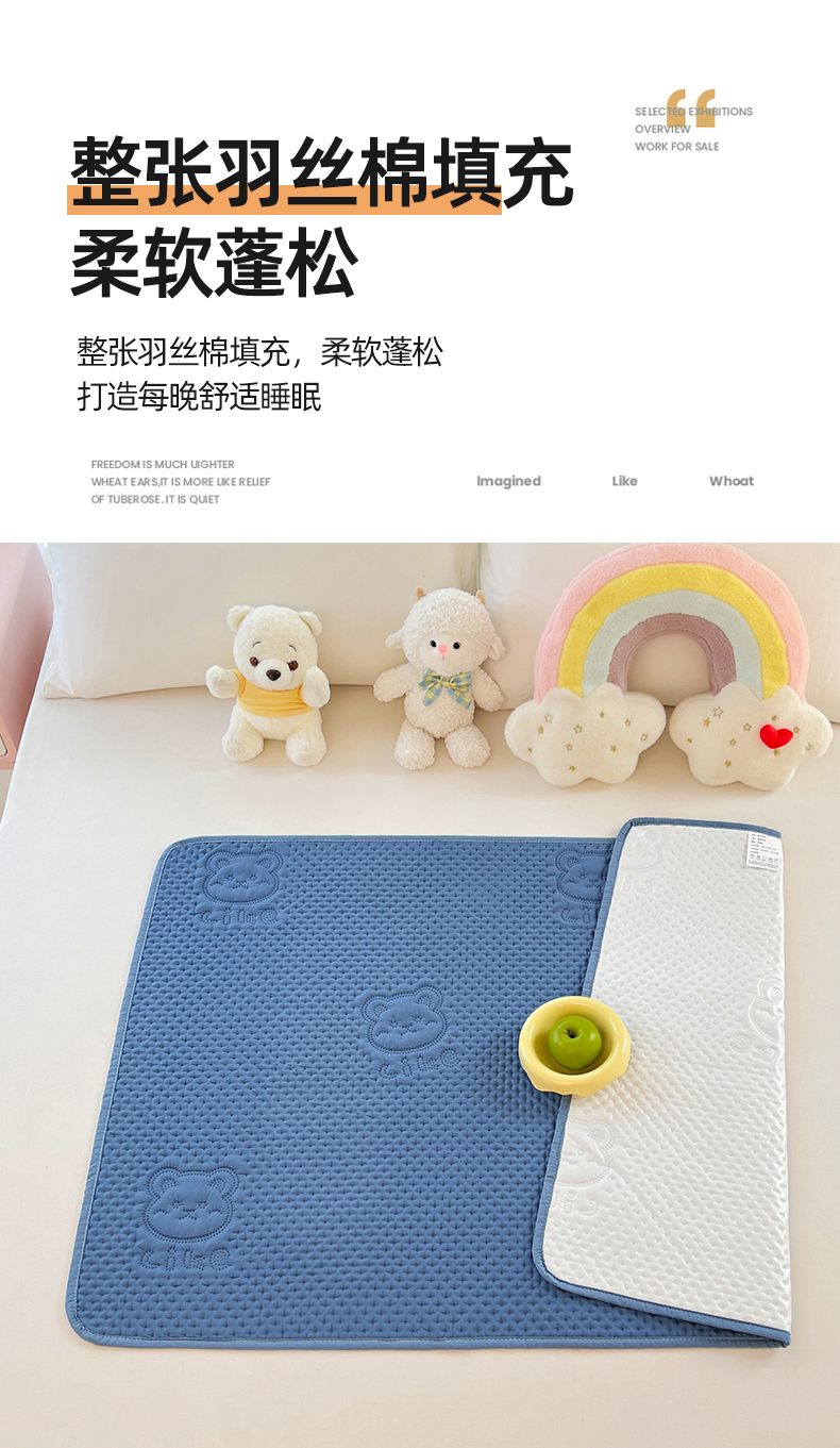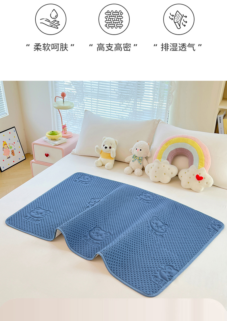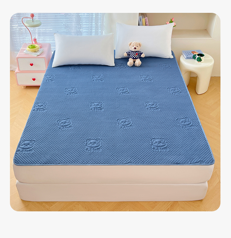 当前位置: 91家纺网 > 商品网购 > 床垫/床褥 > 普通床垫 > 三盛源 2025新款A类原棉夹棉防水隔尿床护垫 爱豆熊隔尿垫-海洋蓝