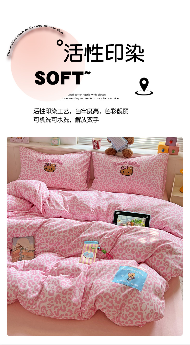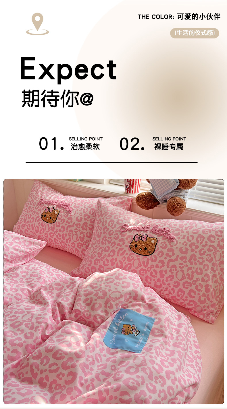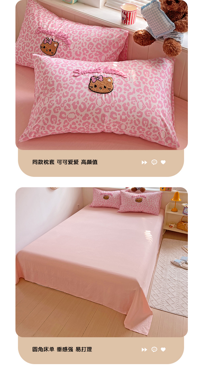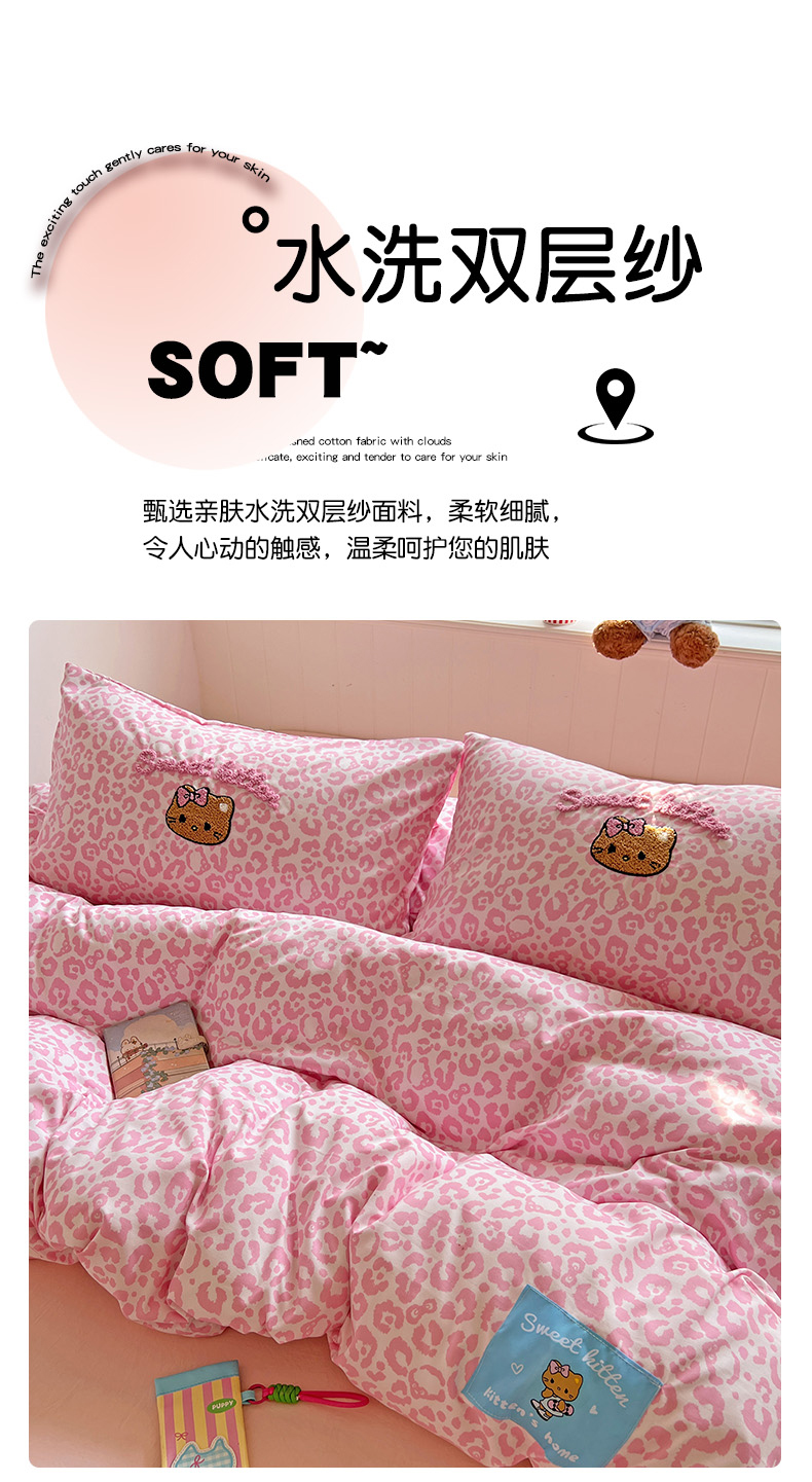(总)童颜 2025新款超柔水洗双层纱豹纹贴布绣印花四件套-场景二,豹纹猫咪粉,豹纹猫咪粉+酷黑,豹纹猫咪粉+玫红,豹纹猫咪咖,豹纹猫咪浅蓝