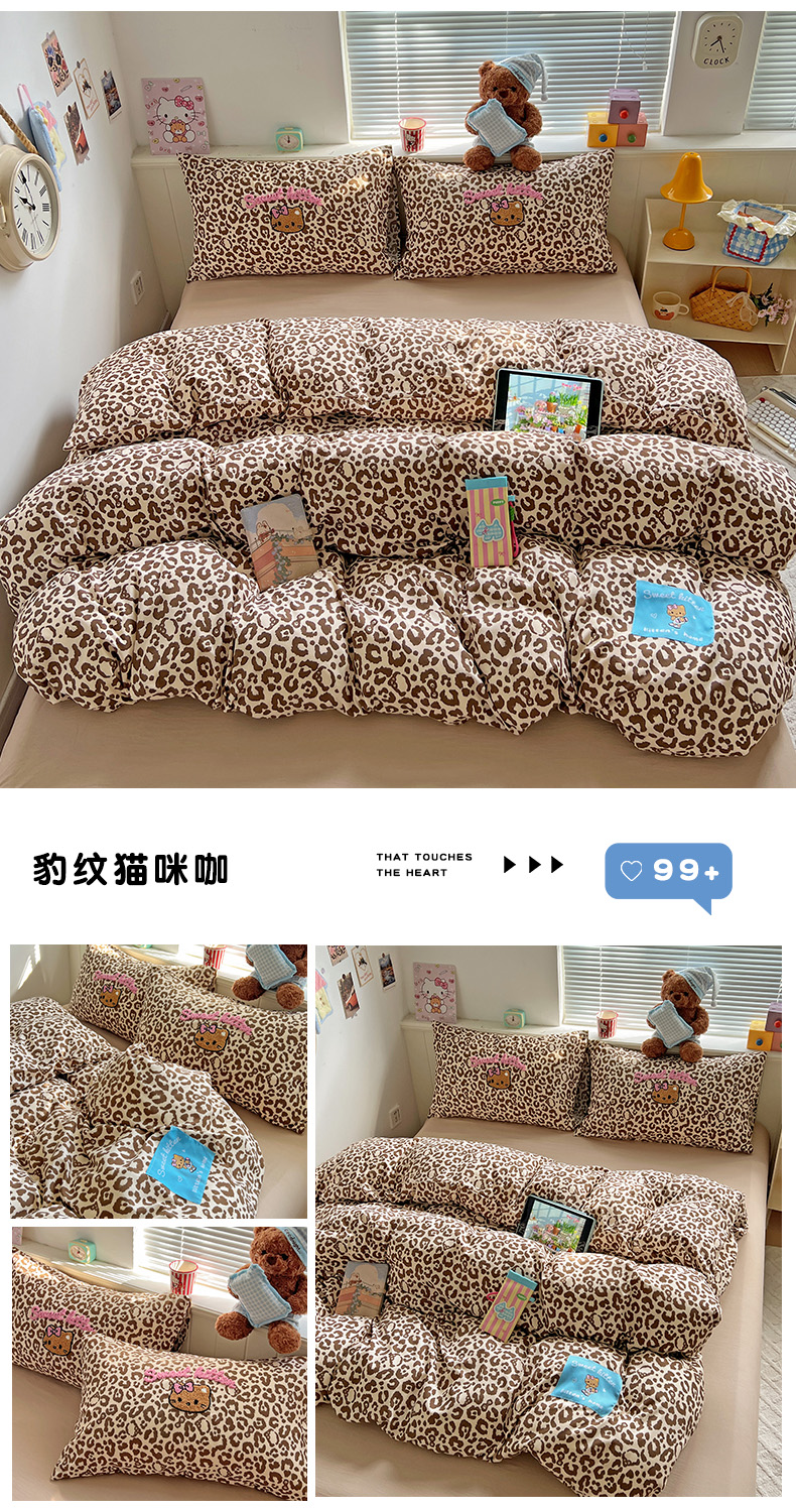 (总)童颜 2025新款超柔水洗双层纱豹纹贴布绣印花四件套,豹纹猫咪粉,豹纹猫咪粉+酷黑,豹纹猫咪粉+玫红,豹纹猫咪咖,豹纹猫咪浅蓝