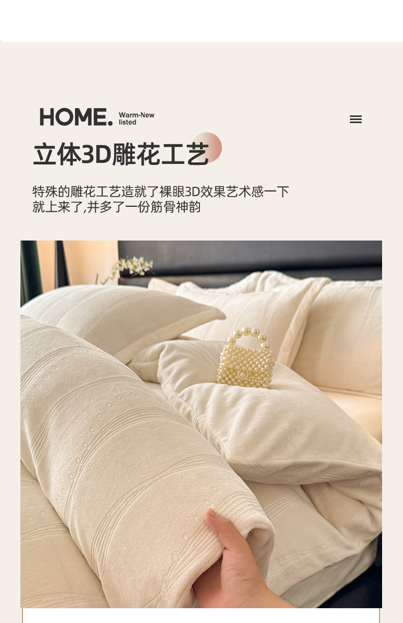 当前位置: 91家纺网 > 商品网购 > 床品套件 > 四件套 > 牛奶绒四件套 > (总)逸尚阁 2025新款立体雕花牛奶绒四件套--史密斯