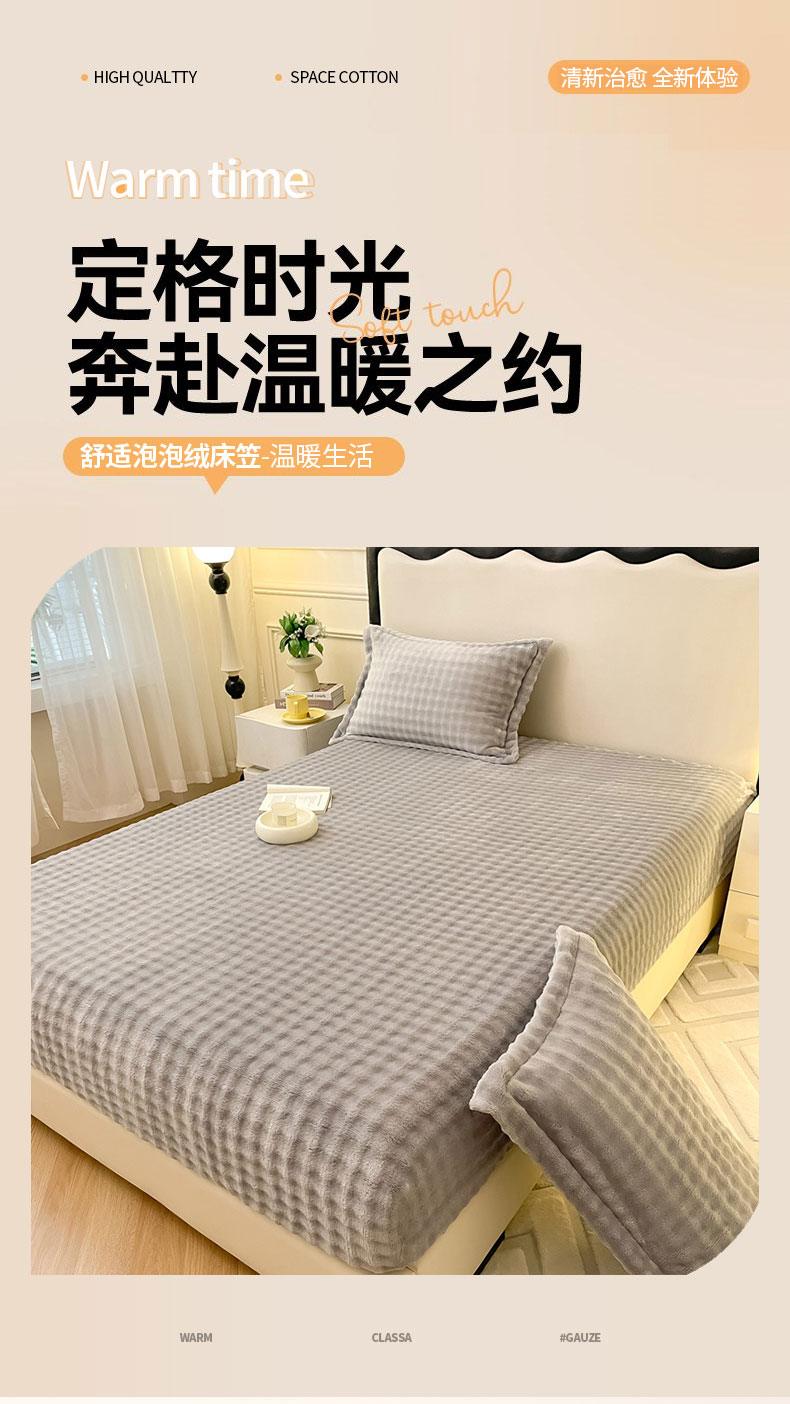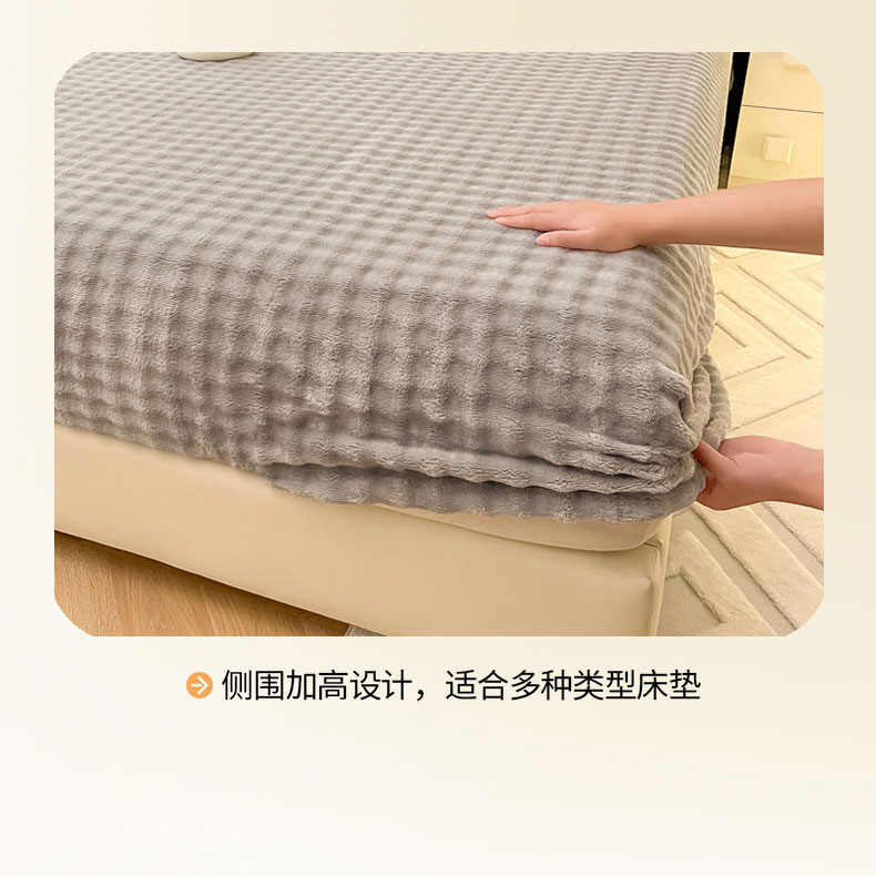 (总)宅部落 2025新款加厚牛奶绒泡泡绒单床笠床笠单品床笠单件,淡雅橙,深灰,星空灰,优雅白,优雅粉,优雅驼