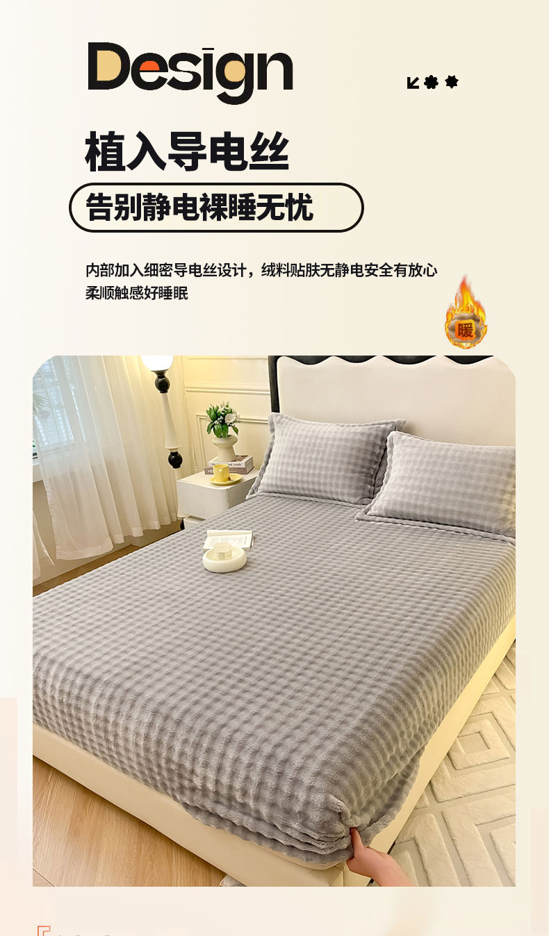 商品名称:宅部落 2025新款加厚牛奶绒泡泡绒单床笠床笠单品床笠单件 星空灰
