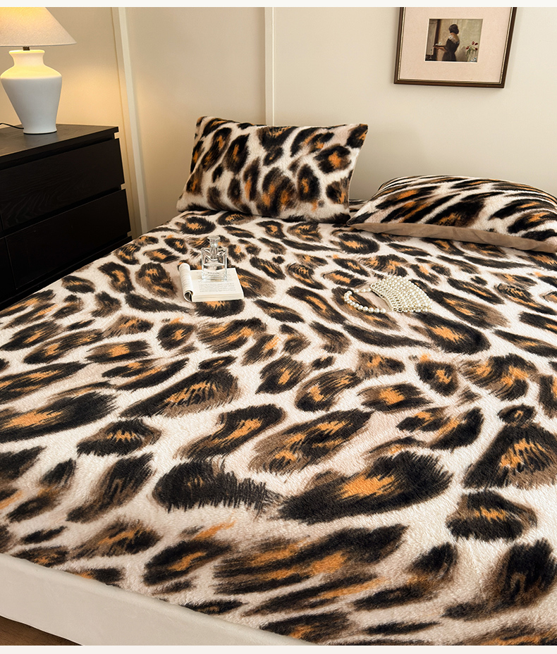(总)娜娜 2025新款兔毛绒保暖床笠,黑牡丹,幻影,水墨画,妩媚,夜豹,组合图仅供展示