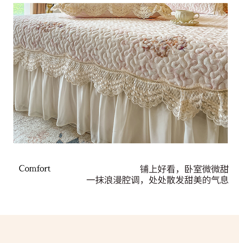 (总)网红馆(ck家纺) 2025新款牛奶绒花边床盖四件套-甜蜜蜜,甜蜜蜜-粉,甜蜜蜜-咖,甜蜜蜜-绿,甜蜜蜜-米,甜蜜蜜-紫