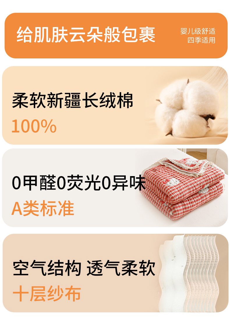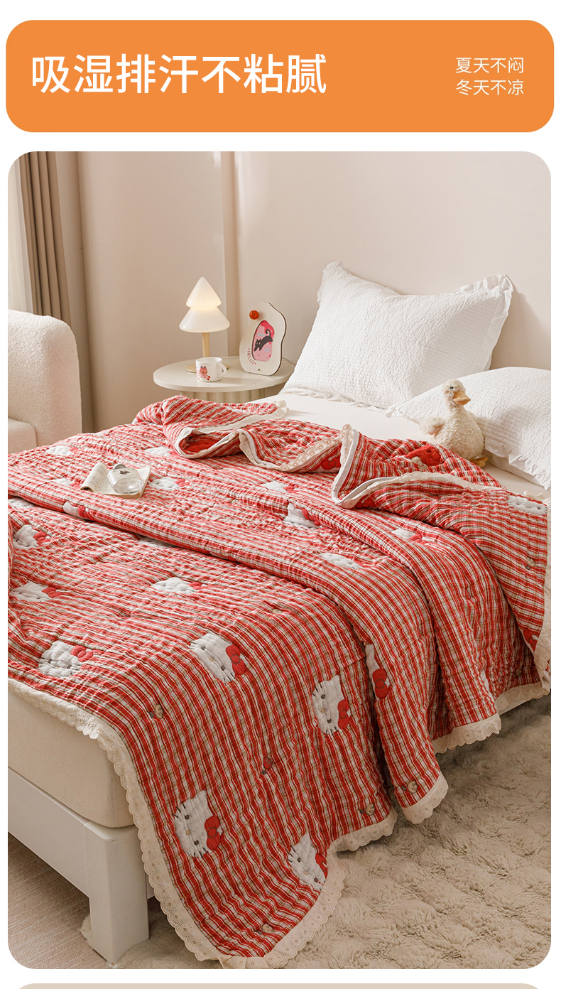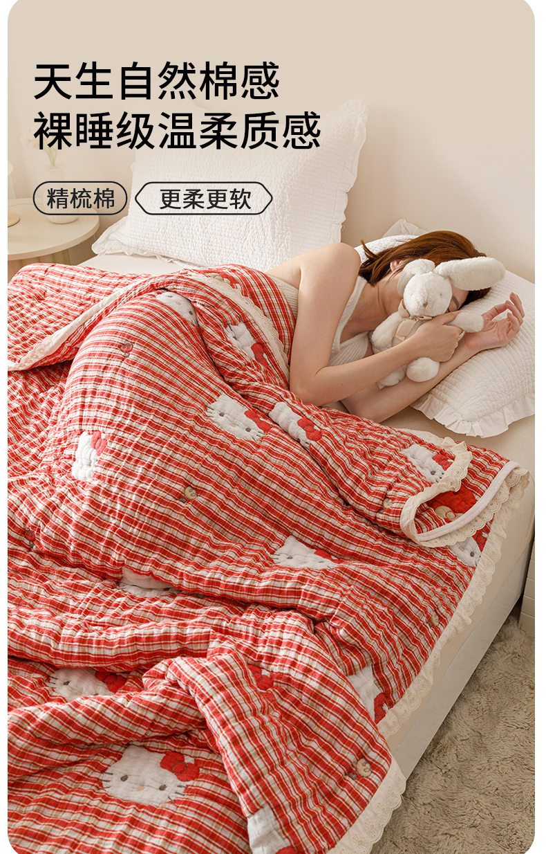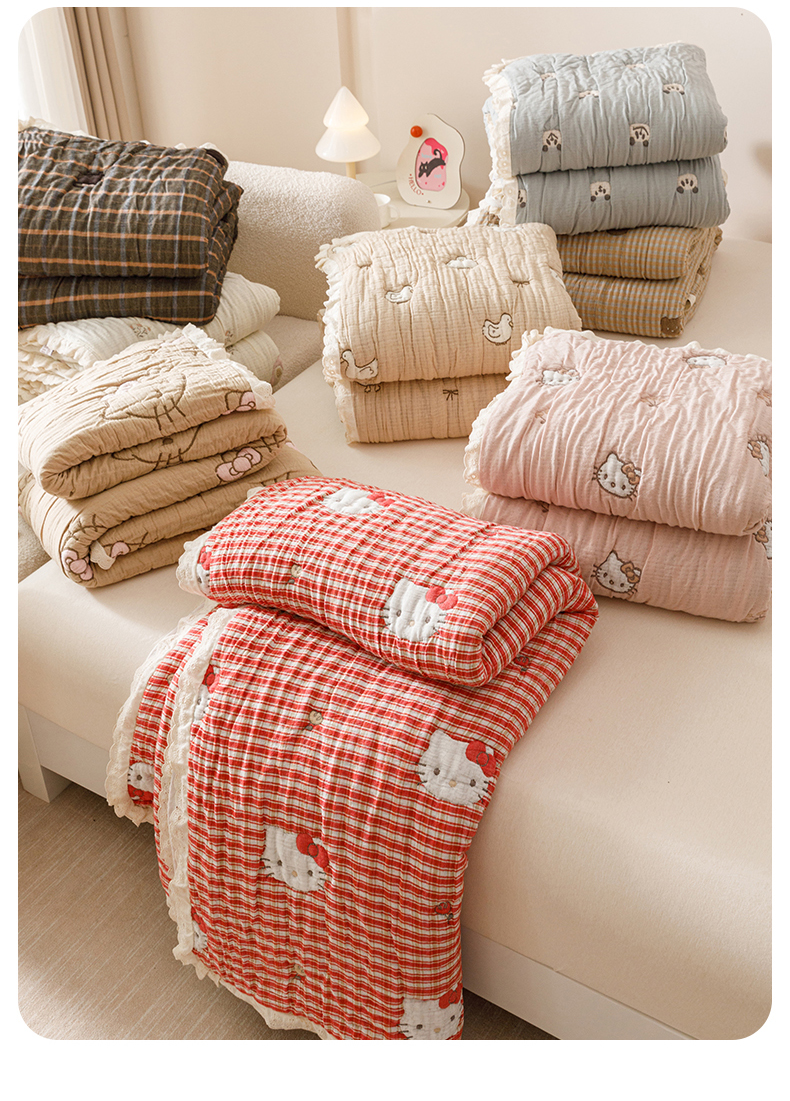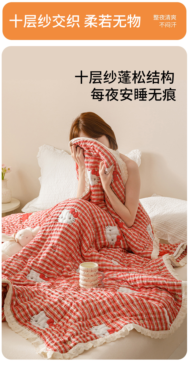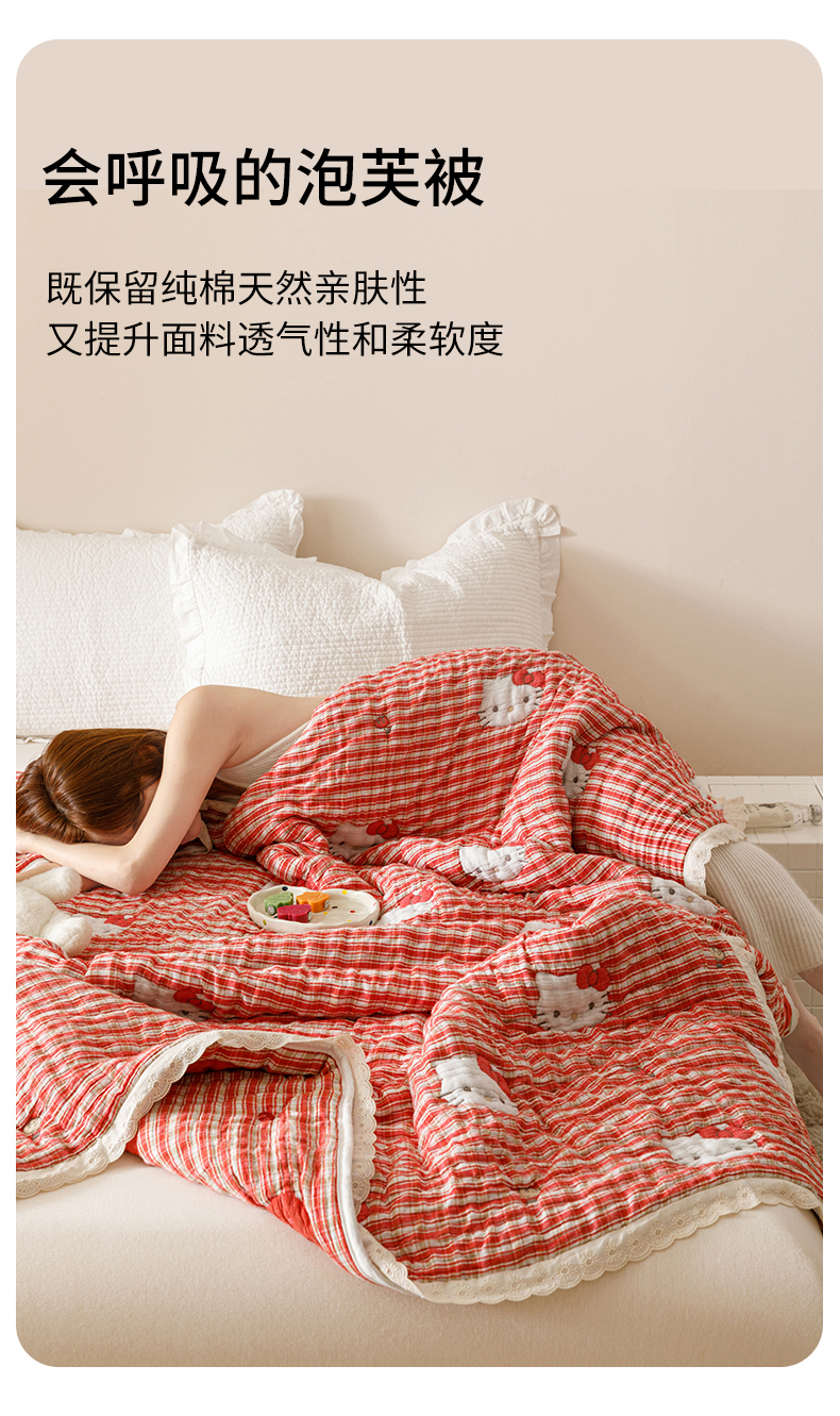 商品名称:麻依 2025新款卡通安心棉泡芙被十层全棉纱布被子被芯 凯蒂的快乐
