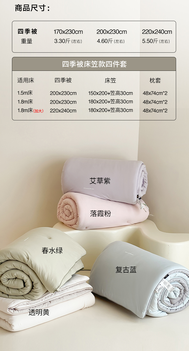 (总)丽笙被芯 2026新款冷暖深睡控温夏被夏凉被空调被,晨雾蓝,豆蔻紫,橘雾粉,黎明白,青空灰,深睡蓝,组合图(仅供展示不可下单)