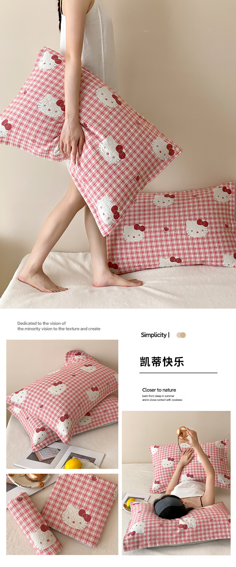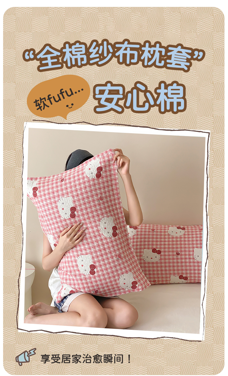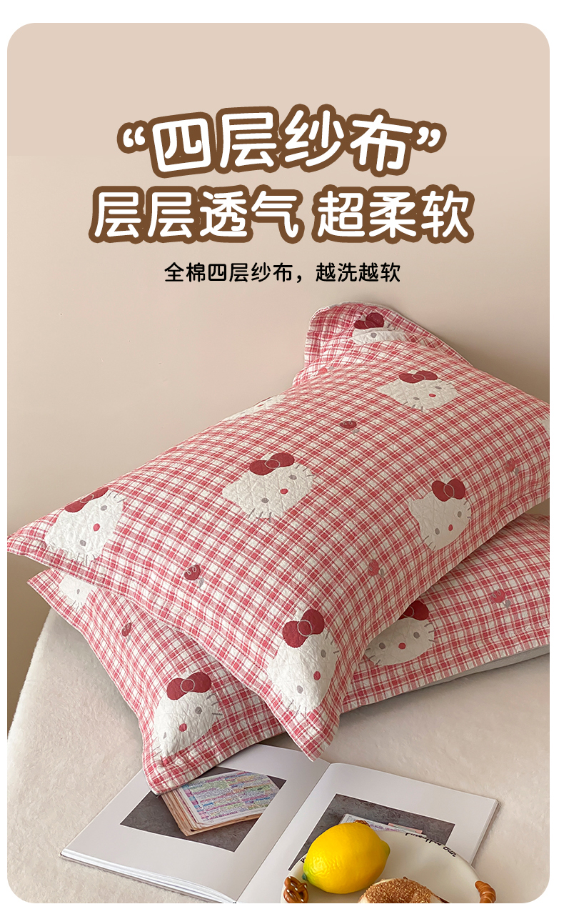 商品名称:麻依 2025新款安心棉纱布枕套全棉四层纱布枕套 凯蒂的快乐