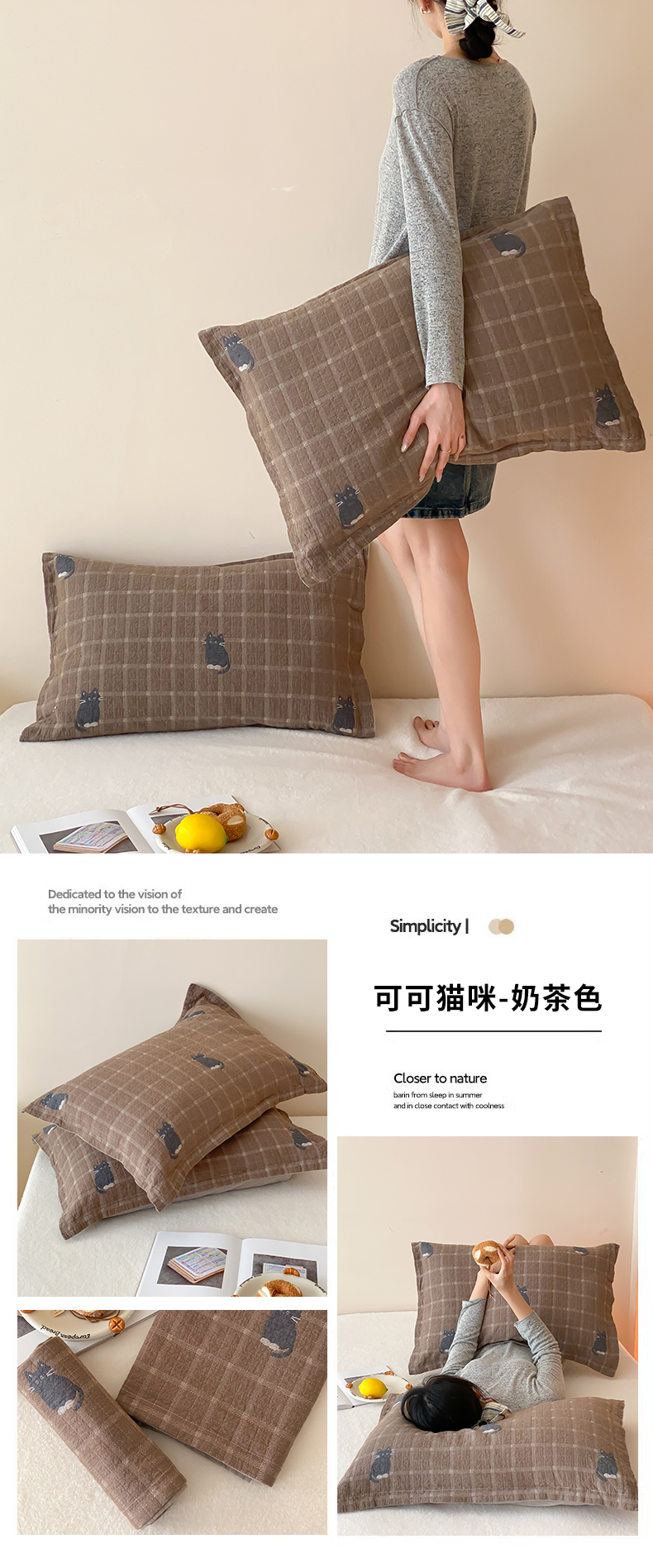 (总)麻依 2025新款安心棉枕套四层纱布枕套,组合图仅供展示不可下单,彩虹点点,点点蝴蝶结-白,点点蝴蝶结-粉,搞怪猫,韩系小樱桃,焦糖草莓,兰溪,漫语,梅屿-绿,梅屿-驼,木栖,小波点,伊慕,樱桃红了