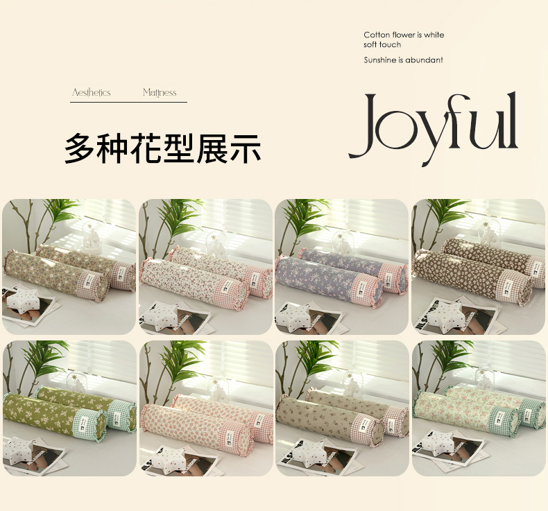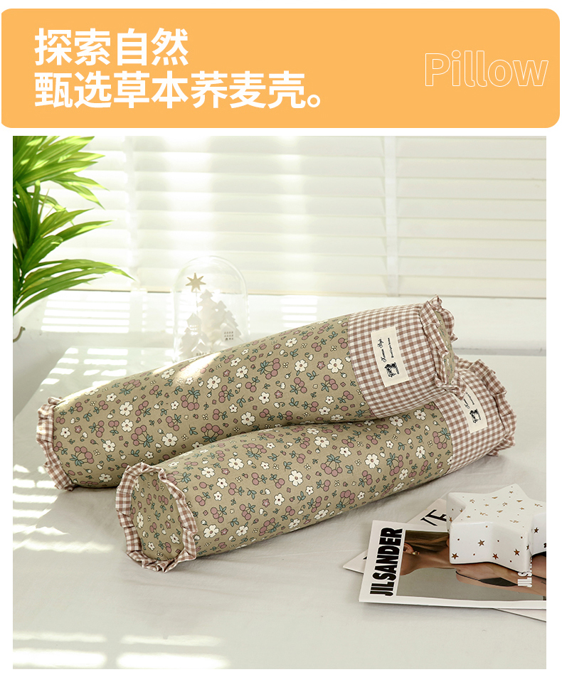 商品名称:明星枕业 2025新款全棉护颈椎圆柱枕双层纱布糖果枕头荞麦颈椎枕芯 组合图仅供展示不可下单