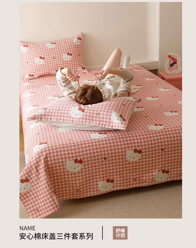 (总)麻依 2025新款安心棉床盖三件全棉四层纱布床单,粉色KT猫,花园小兔,凯蒂的快乐,可爱鸭鸭,可可猫咪-奶茶,可可猫咪-深咖,蓝色熊猫,团团KT,小熊格格,心心领结,欣欣樱桃,雪漫,樱桃兔猫,组合