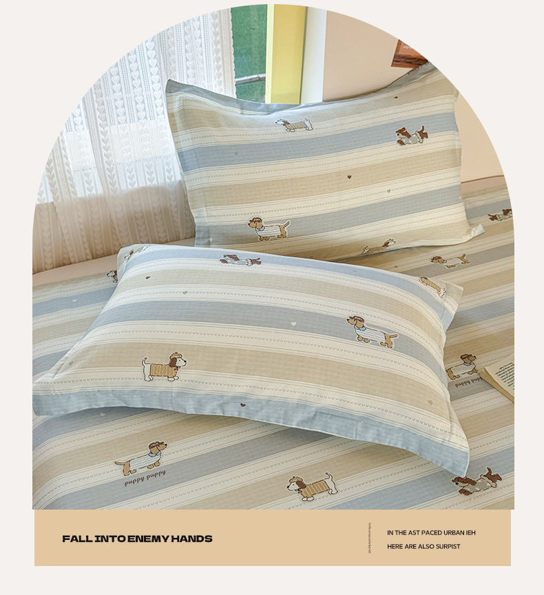 商品名称:尚帛 2026新款全棉品质喷气印花爆款四件套 多规格套件 单品系列-单枕套 奔跑小狗