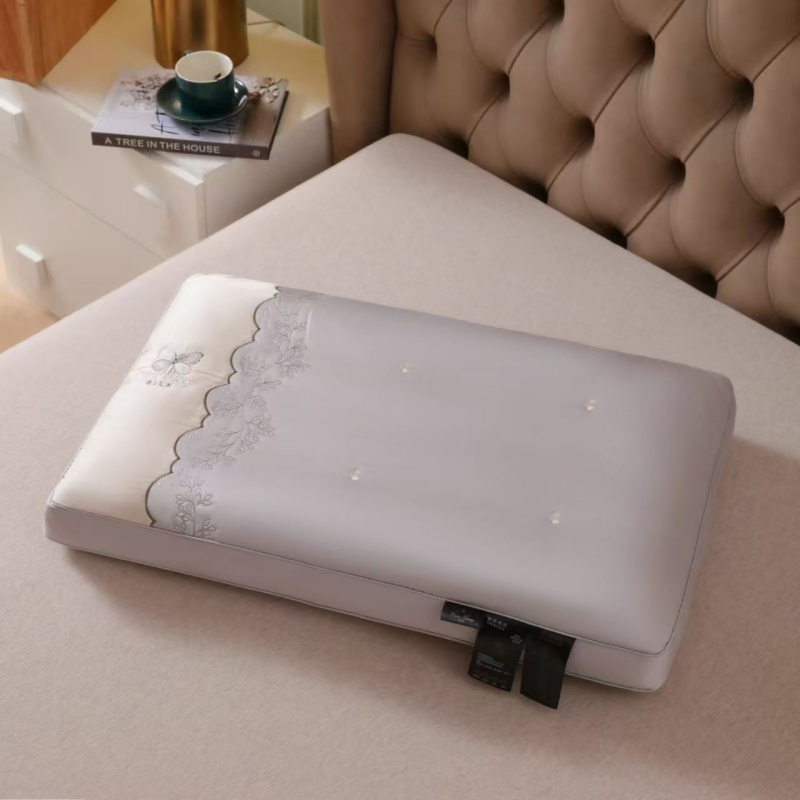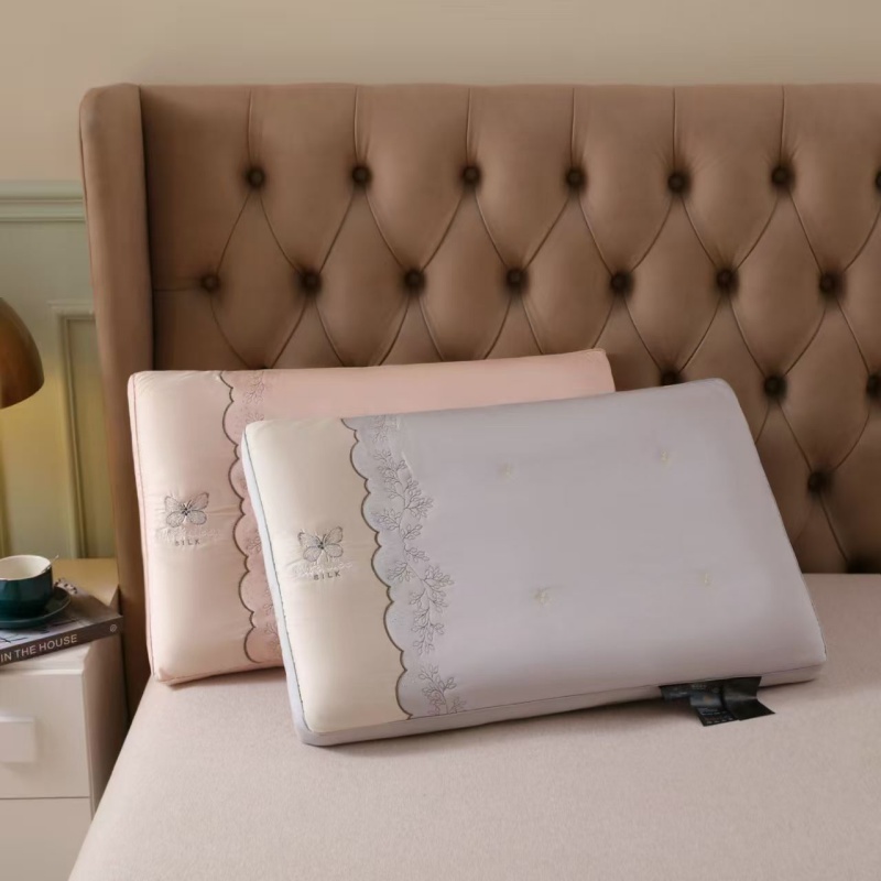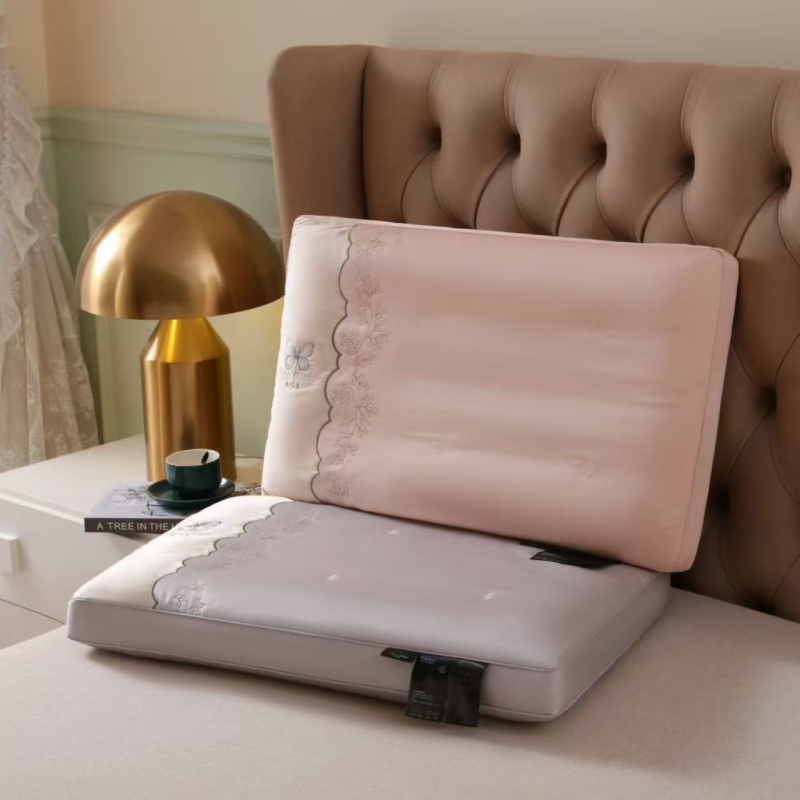 商品名称:云熙枕业 2025新款云丝绣花高端大气羽丝护颈枕 枕头枕芯 粉色