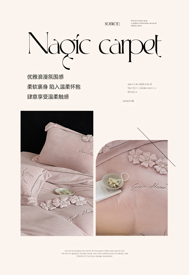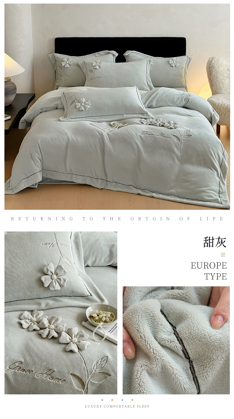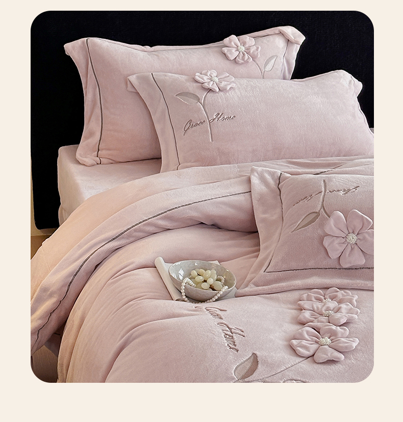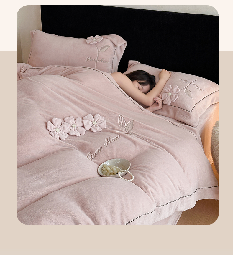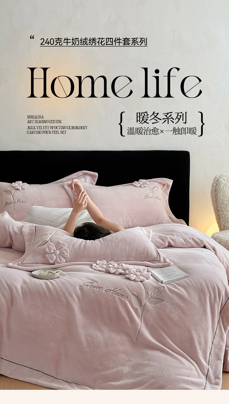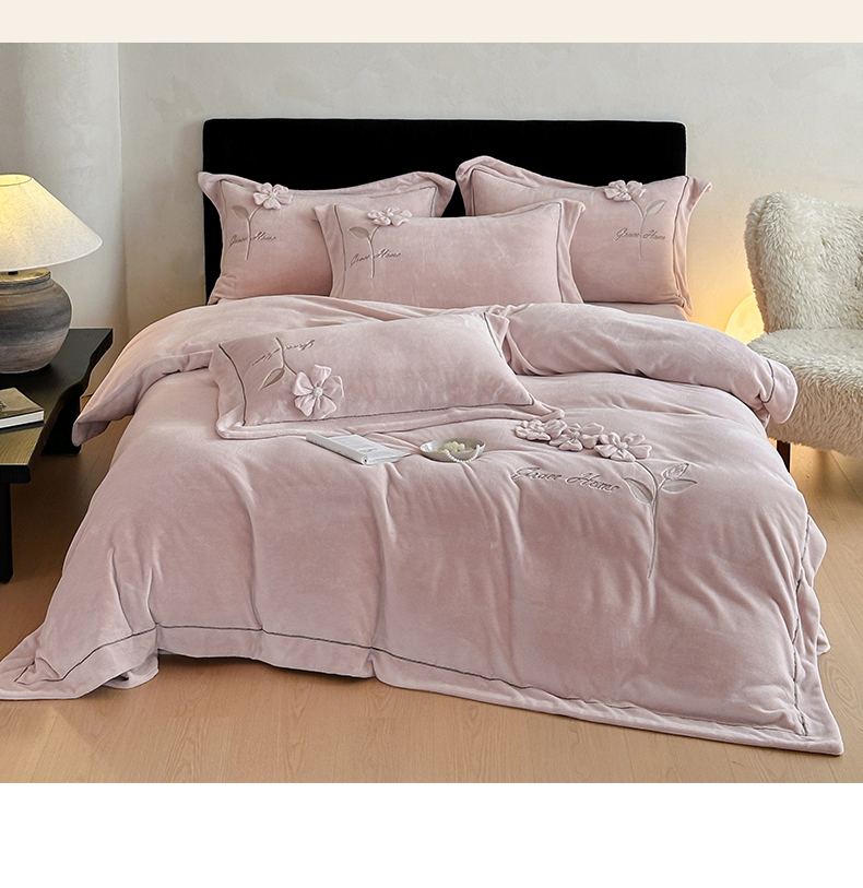 商品名称:(总)名品优仓 2025新款240克牛奶绒刺绣四件套-花枝妙曼