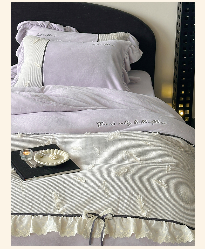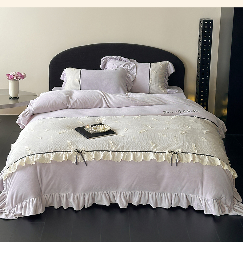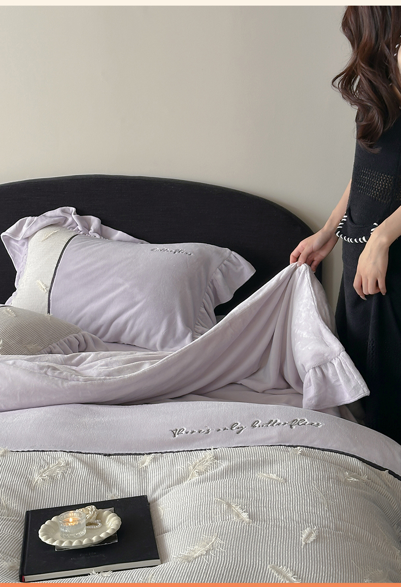 名品优仓 2025新款240克奶肤绒刺绣四件套-丽莎 丽莎-沐粉