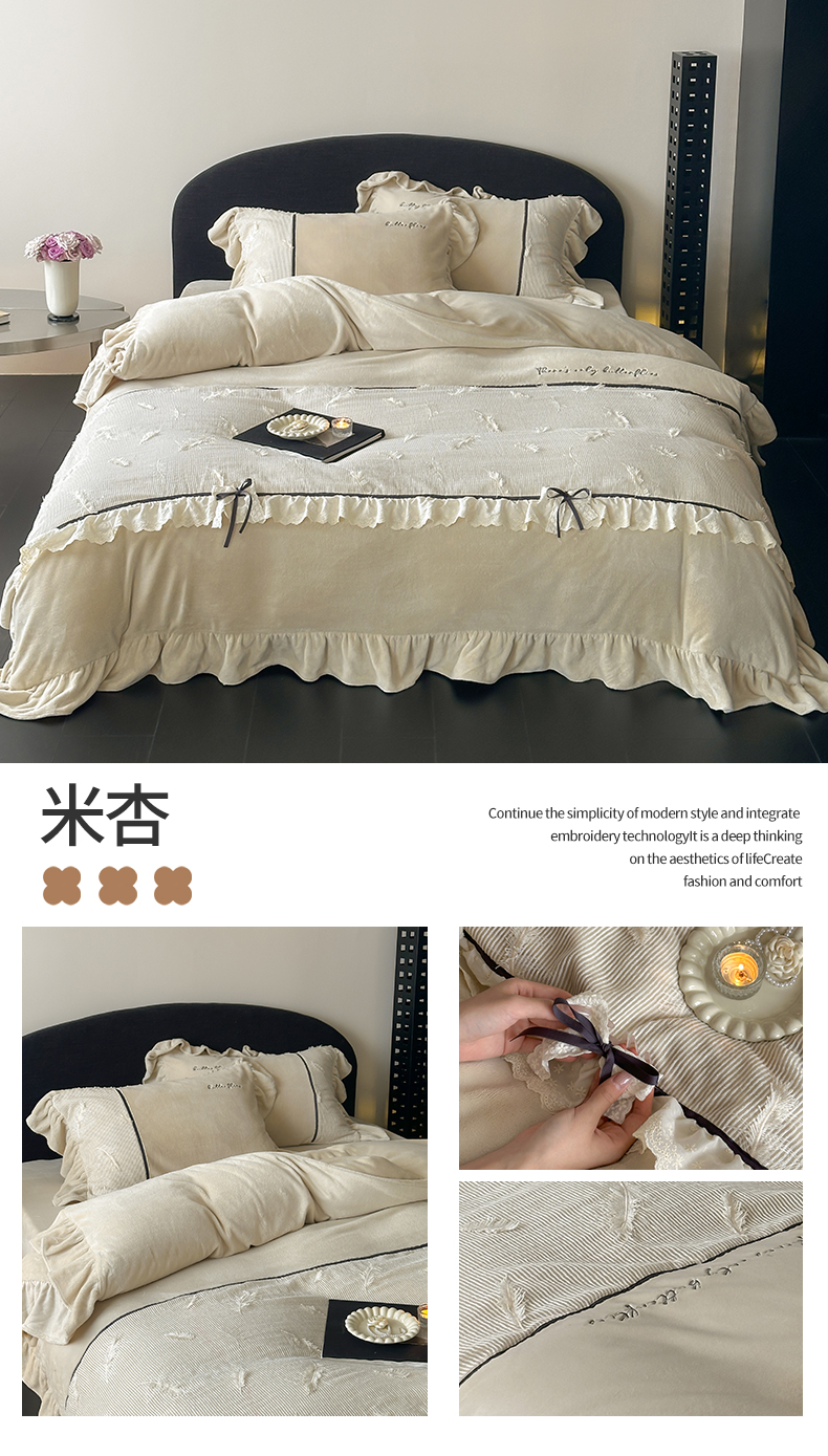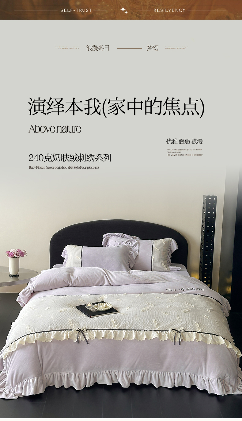 商品名称:名品优仓 2025新款240克奶肤绒刺绣四件套-丽莎 丽莎-沐粉