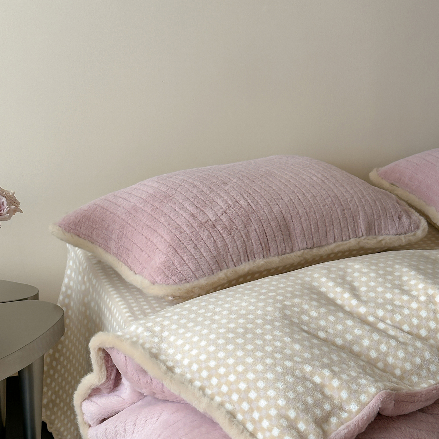 (总)桔子家纺 2025秋冬新款羊毛绒mi兔系列四件套,波点mi兔,复古红波点,黄油mi兔,烤面包