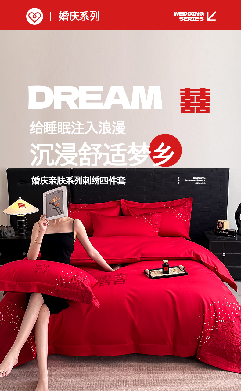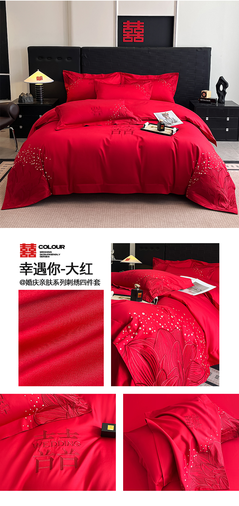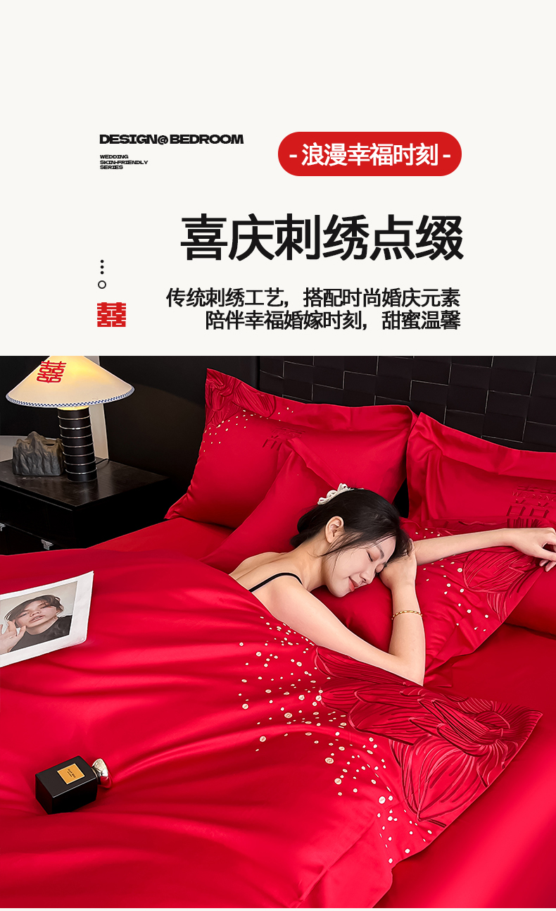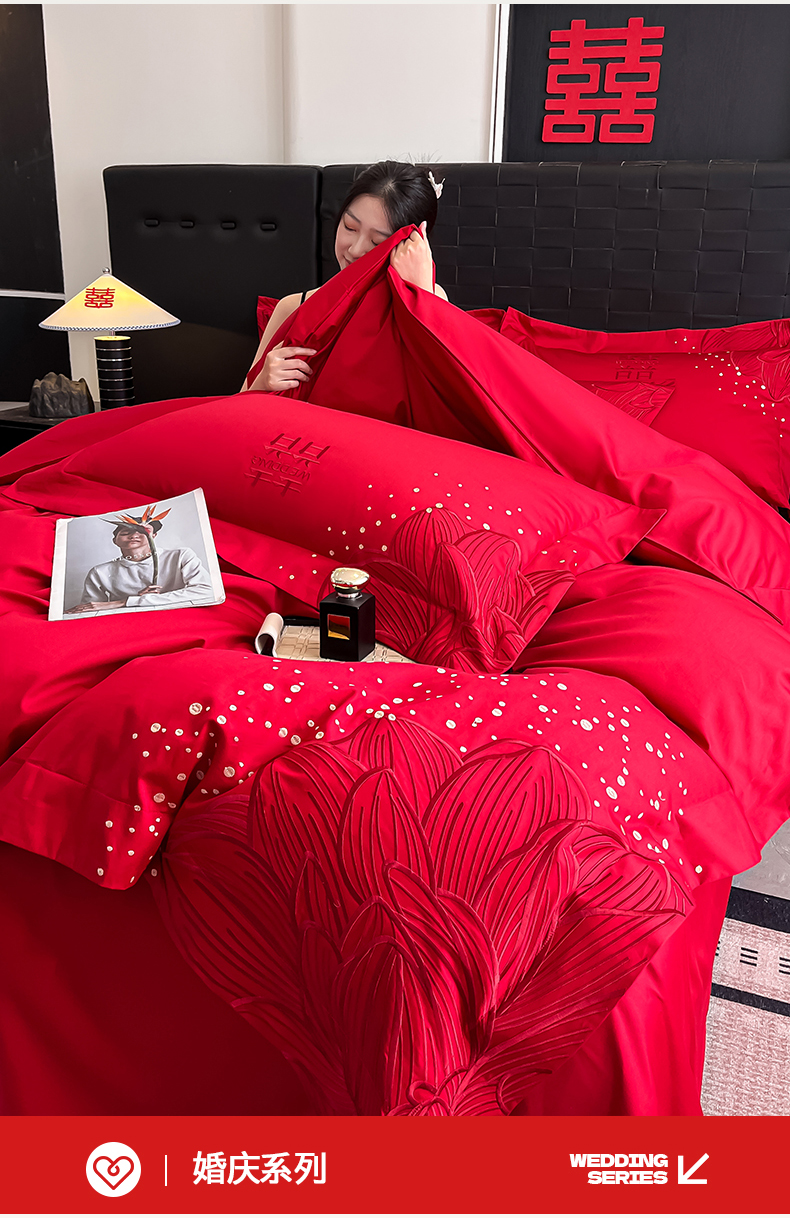 当前位置: 91家纺网 > 商品网购 > 床品套件 > 四件套 > 婚庆四件套 > 置顶家纺 2025新款亲肤刺绣婚庆四件套 幸遇你-大红
