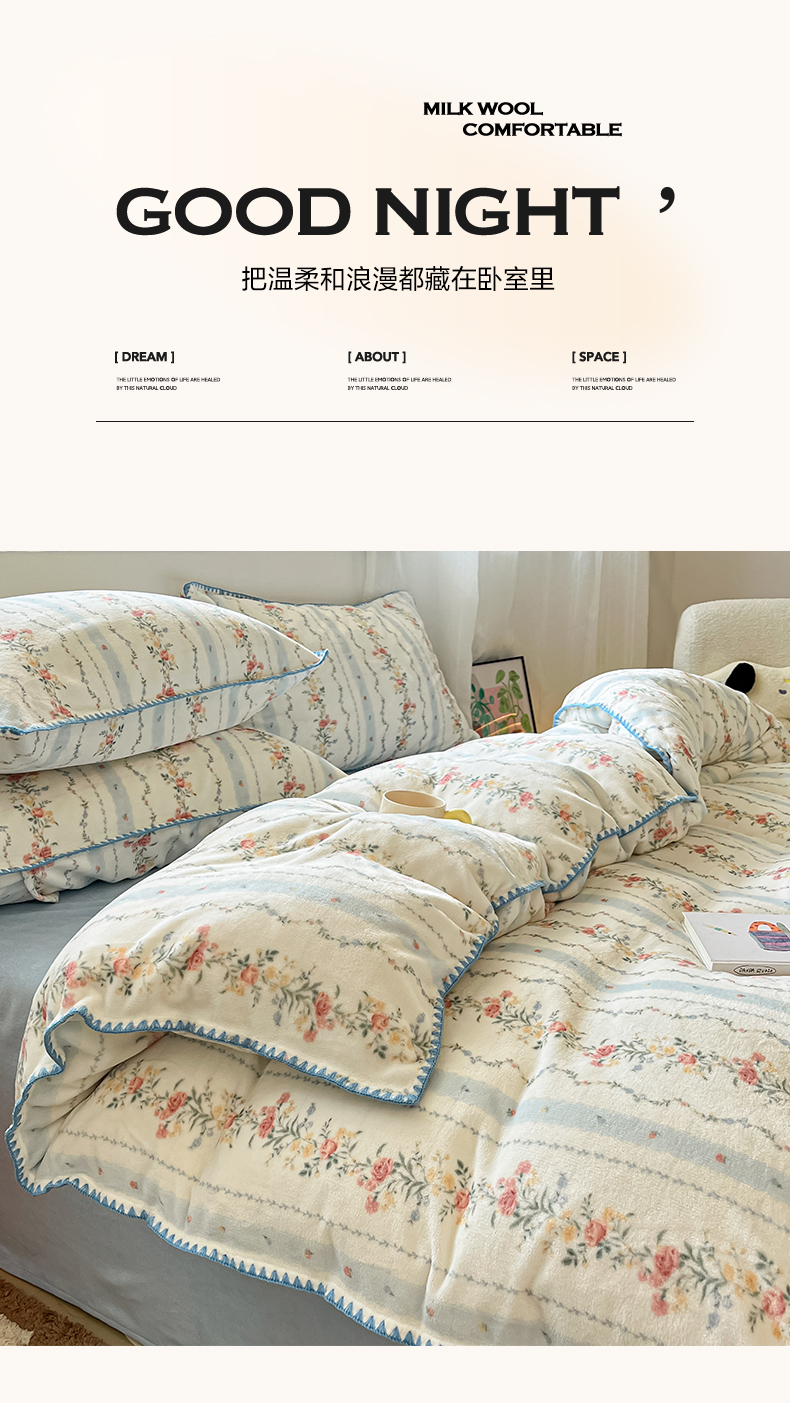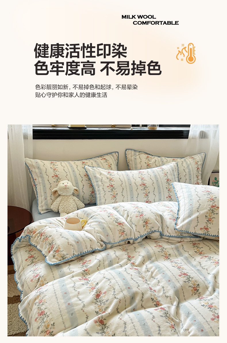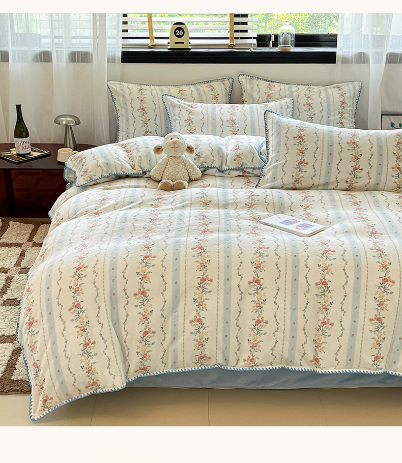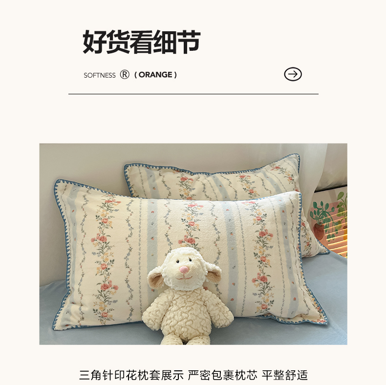 商品名称:如一 2025新款A类高克重牛奶绒印花三角针工艺四件套 安梦