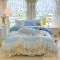 商品名称:苏米娜2025秋冬新款230g法式公主风全消光牛奶绒床裙款四件套纯色蕾丝花边刺绣床盖款四件套 欧若拉-梦幻蓝