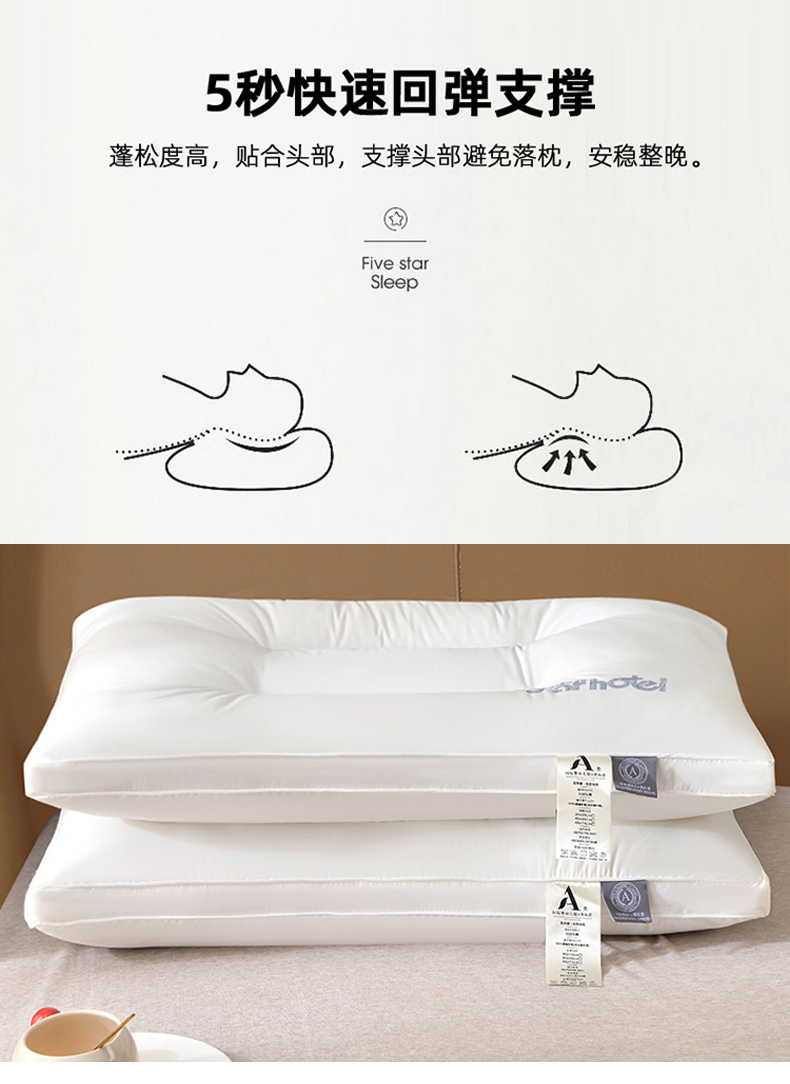 兴丝露枕芯 五星酒店枕 舒弹枕 高弹枕 特价舒适枕 羽丝枕 成人枕头,磨毛酒店枕